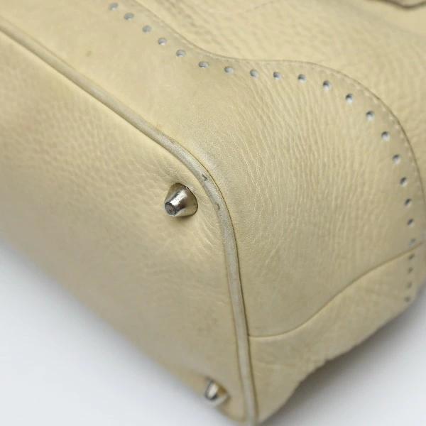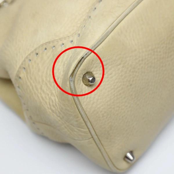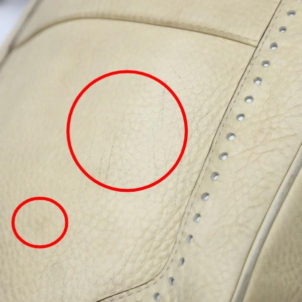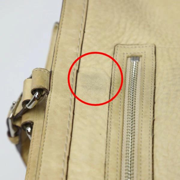 | 外側 | ランク:AB 表面:キズ、小キズ、汚れ、スレ ハンドル・ストラップ:汚れ、シワ コーナー:キズ、汚れ、スレ、破れ レザー部分は全体的に色あせやシミ、薄汚れやスレがあり、角はスレによる破れや汚れ(画像5〜11枚目参照)、ハンドルに汚れや色褪せ、シワがあります(画像13枚目参照) |