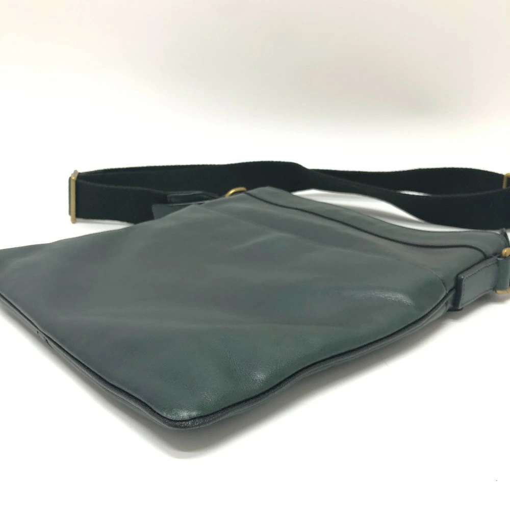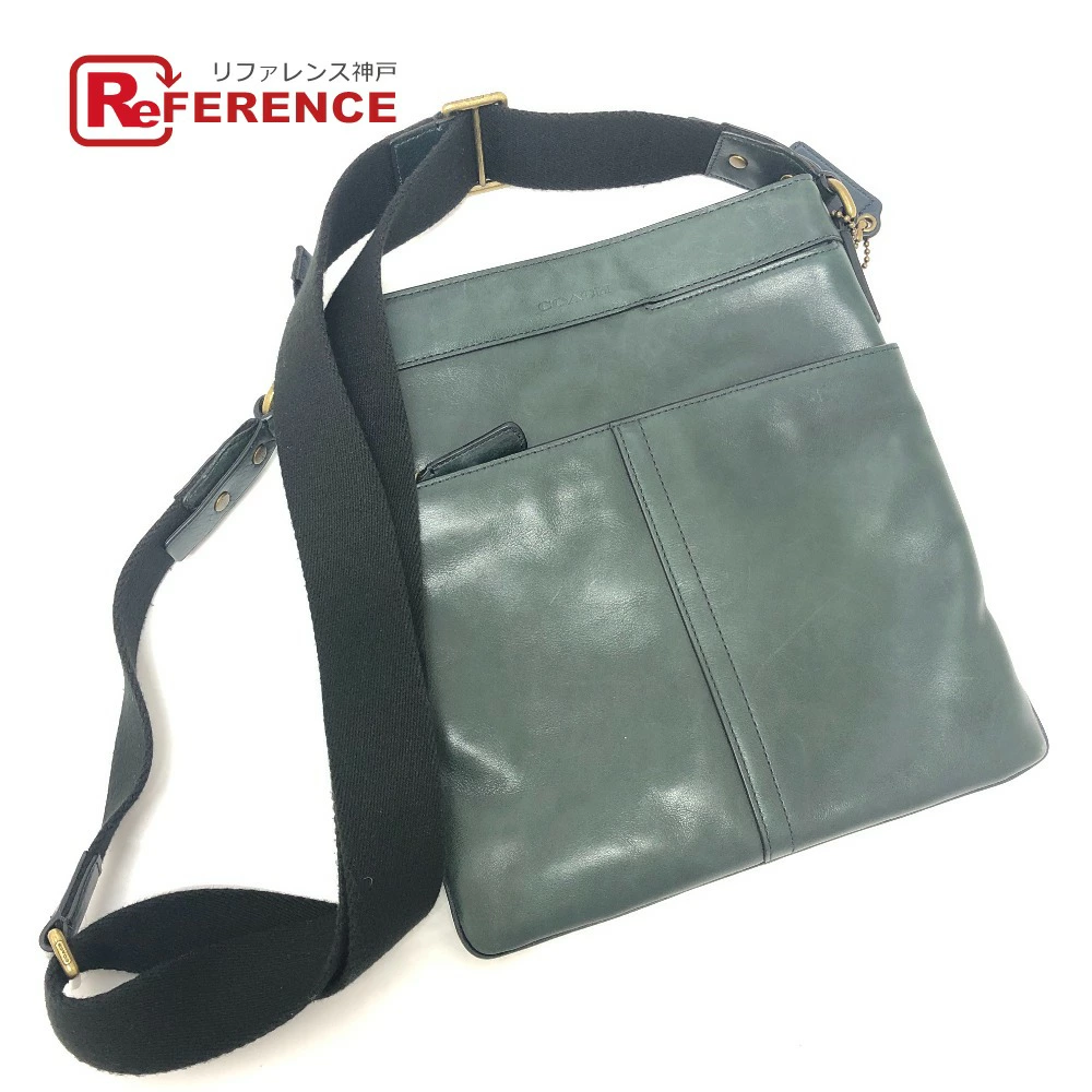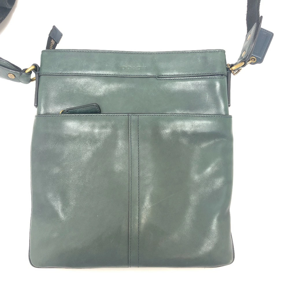 Pre-owned COACH 70710 flat crossbody shoulder bag in green leather for men.