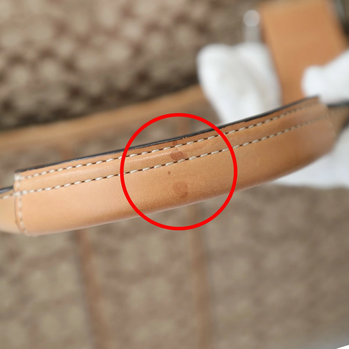| 外側 | ランク:AB ハンドル・ストラップ:スレ、シワ コーナー:キズ、スレ 底鉄にキズあり 四つ角ヌメ革部分スレあり ハンドル部分に汚れやシワあり 側面などのヌメ革部分にシミや薄汚れ、スレあり |