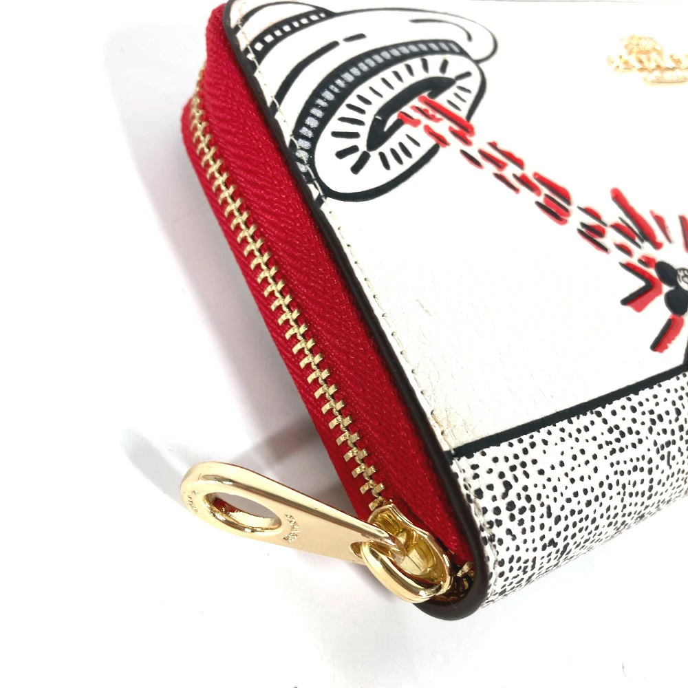 Pre-owned Coach C7800 Keith Haring Collaboration Mickey Mouse Accordion Zip-Around Disney Long Wallet in White Leather.