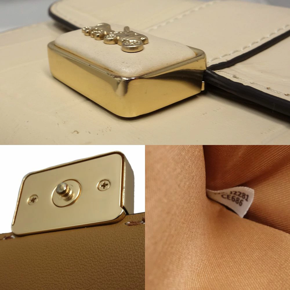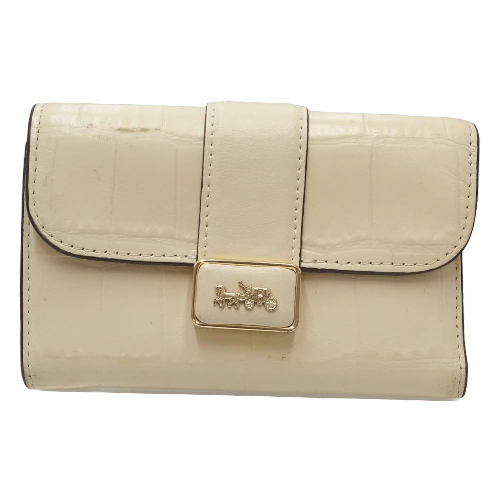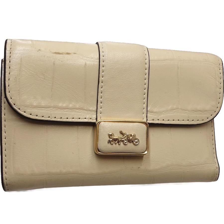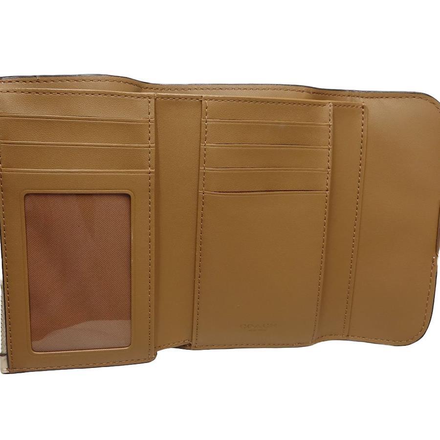 Pre-owned Coach Compact Wallet CE686, Tri-fold Leather, Beige/180145
