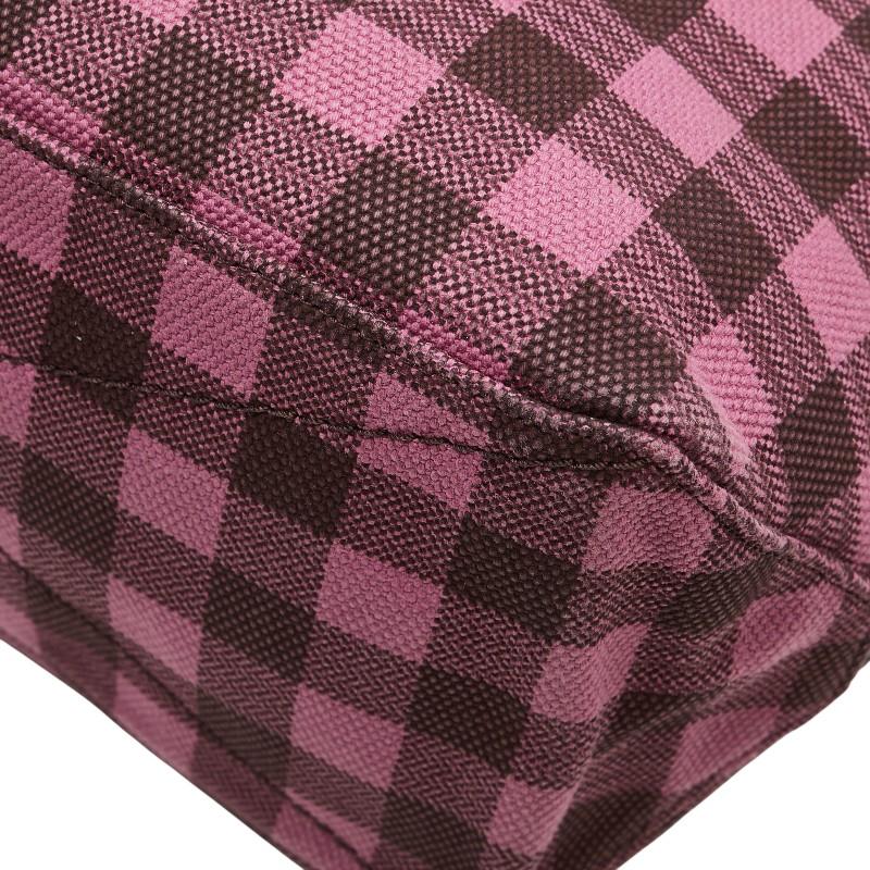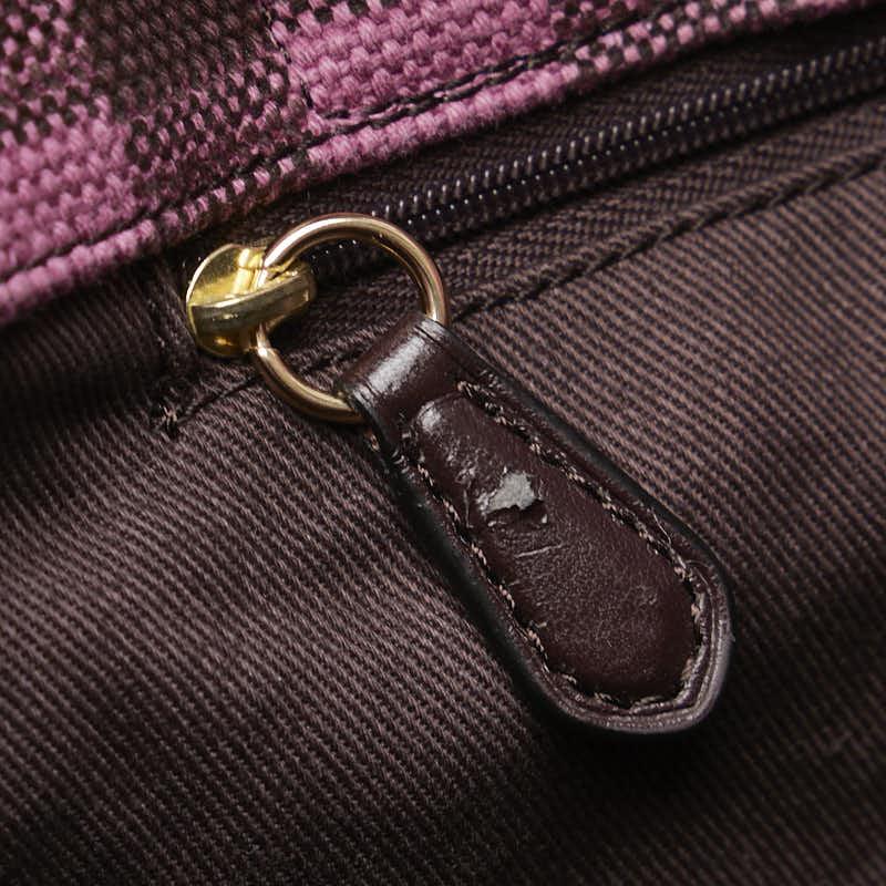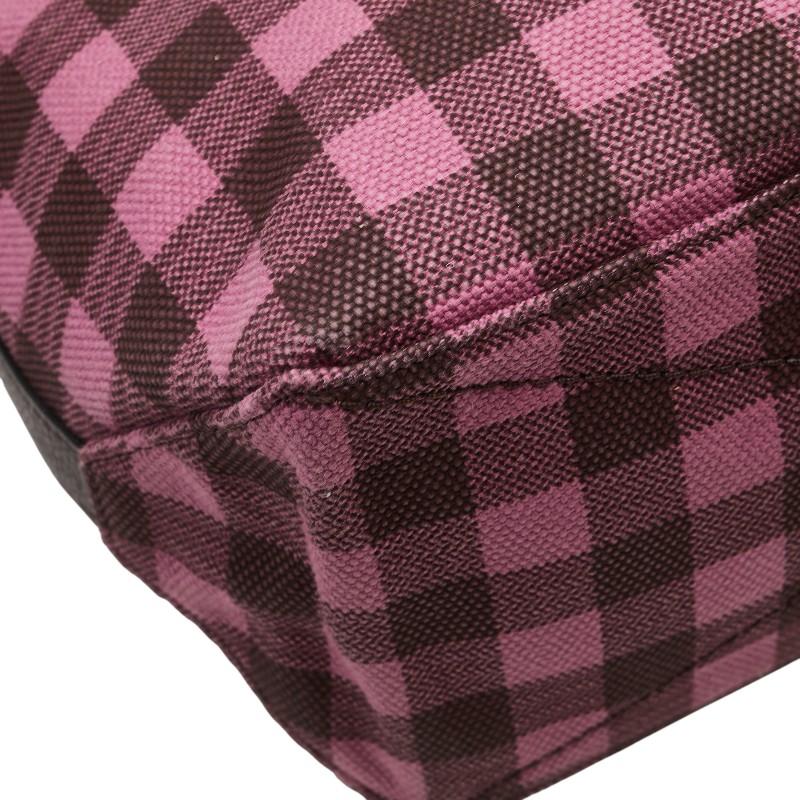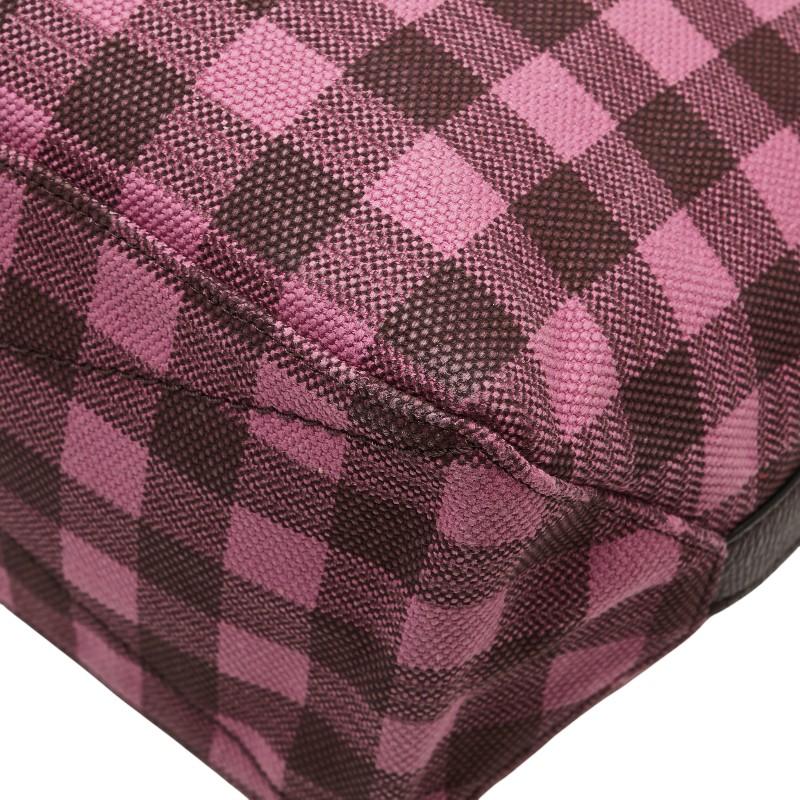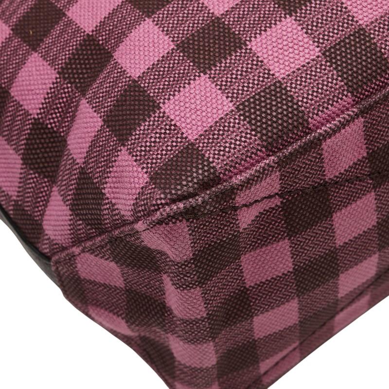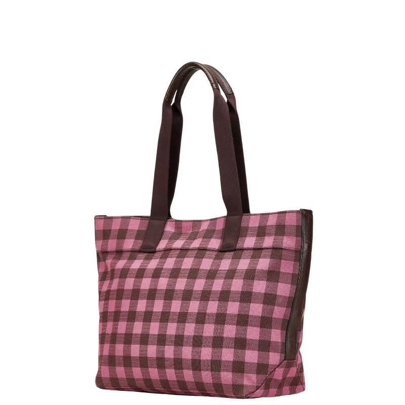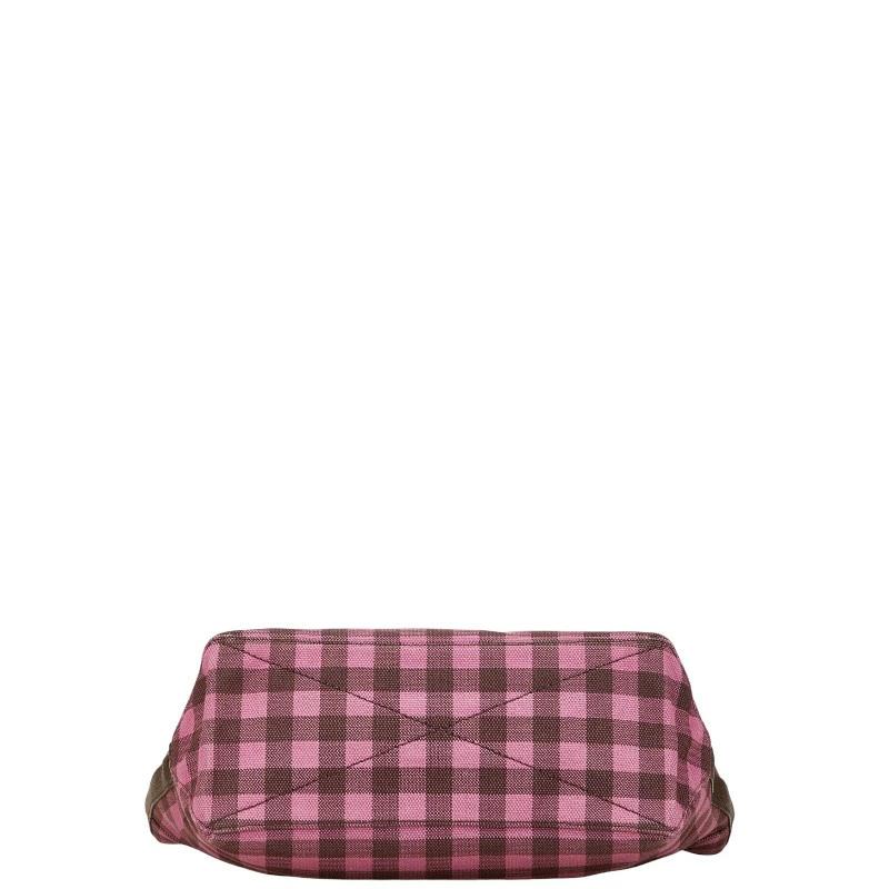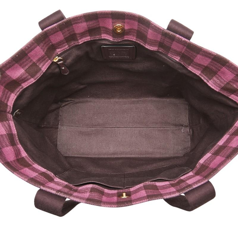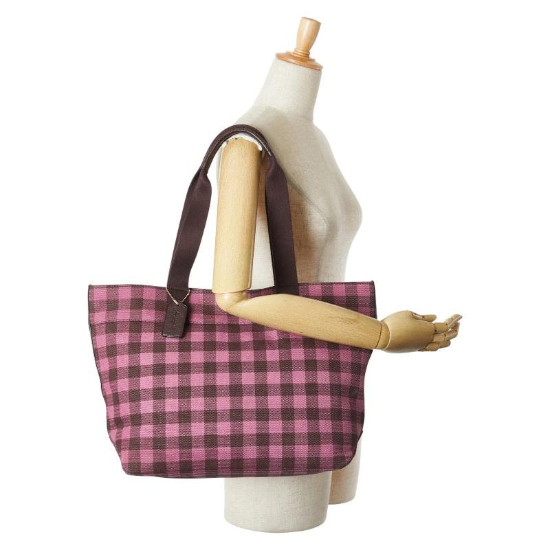 Pre-owned Coach gingham check shoulder bag/tote bag in pink and burgundy canvas and leather.
