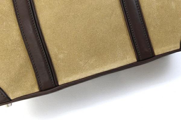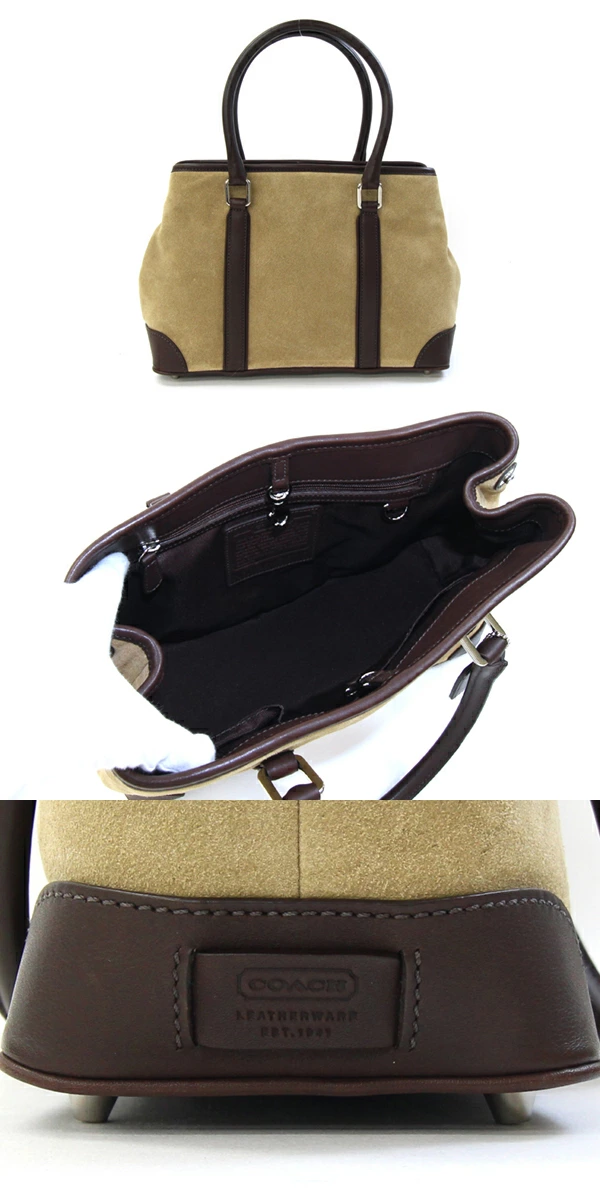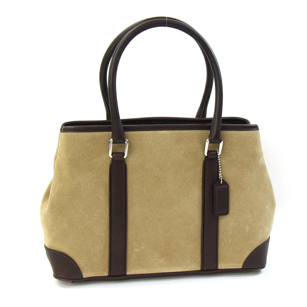 Pre-owned Coach handbag 7536 in yellow beige and dark brown suede and leather. Women's tote bag.