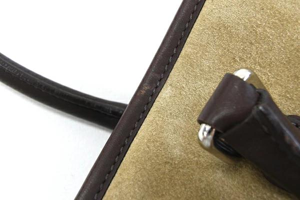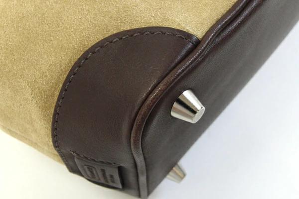 状態外側:スウェード部分スレ・薄汚れ・キズ跡あり。レザーに小キズ・スレああり、角・フチにスレによる薄色褪せあり。