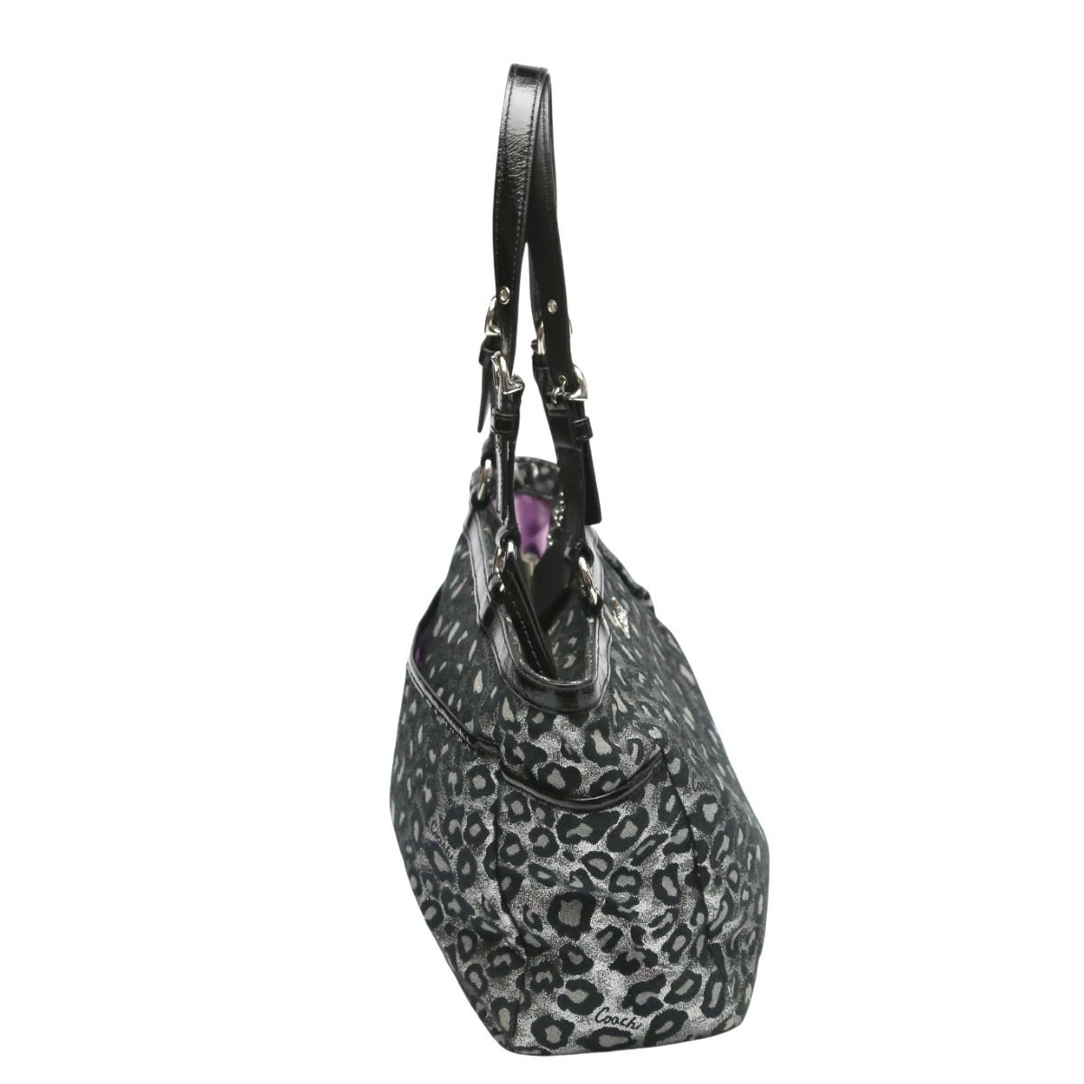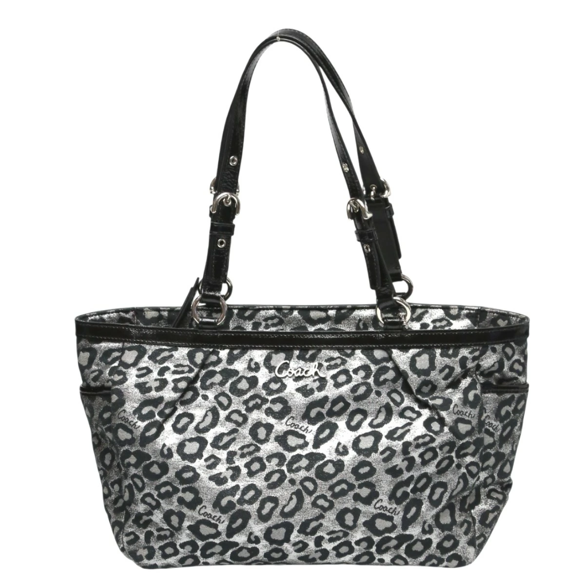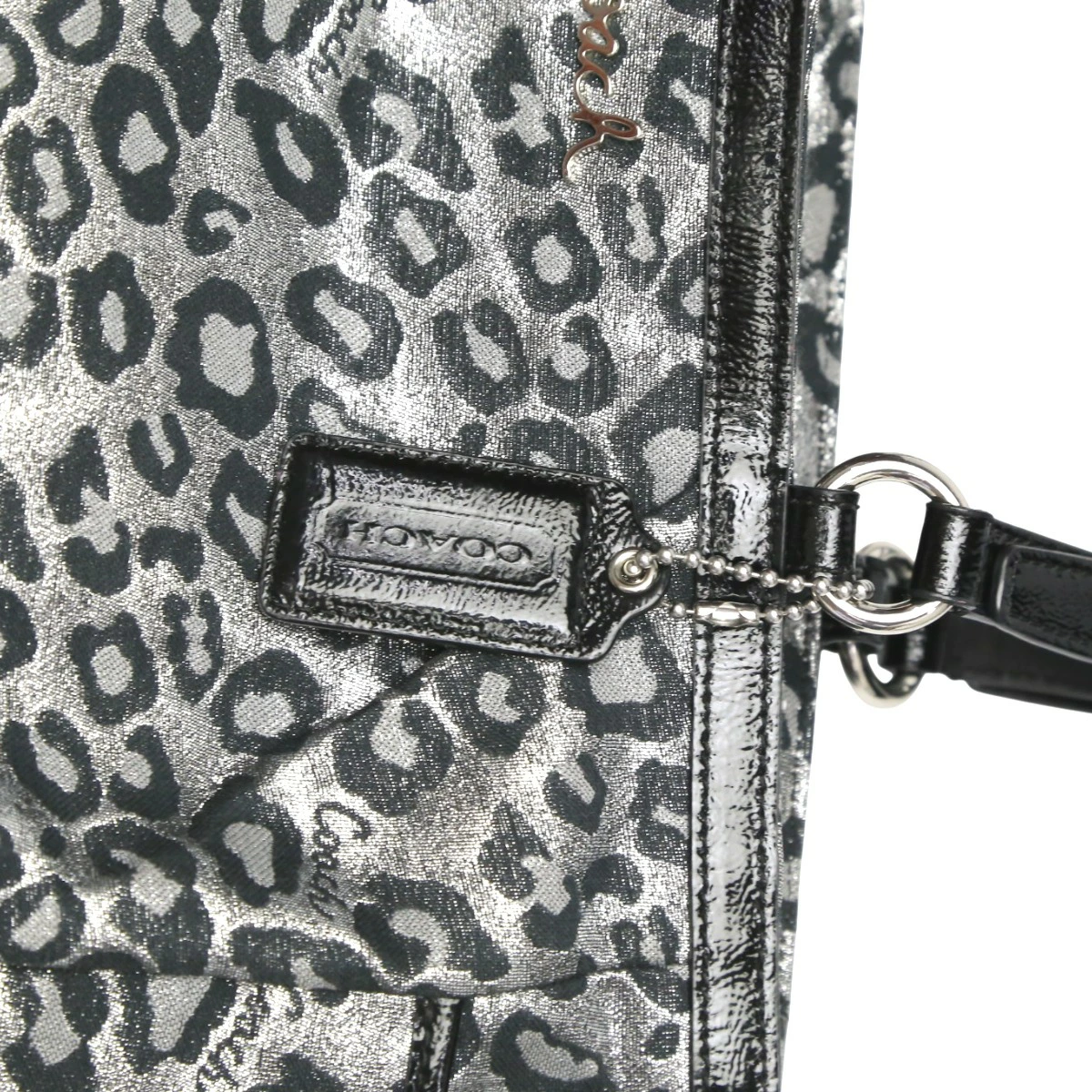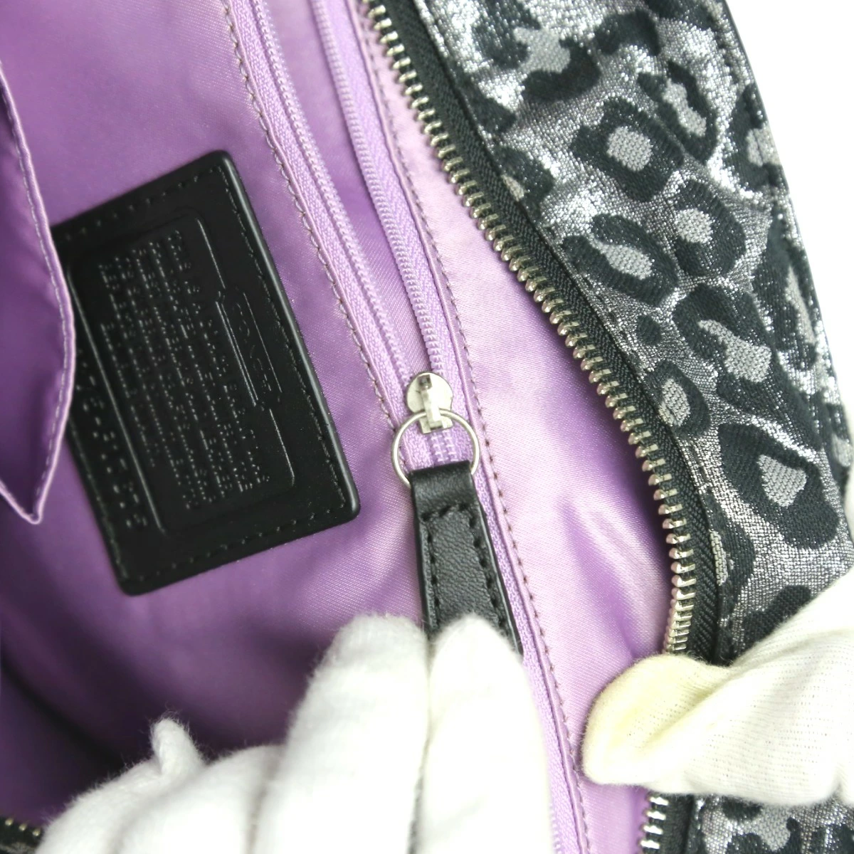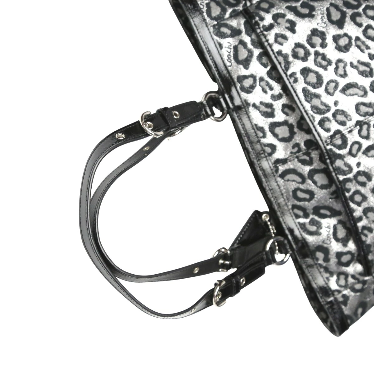Pre-owned Coach handbag, tote bag, shoulder bag, leopard print canvas, F17675, silver and black.