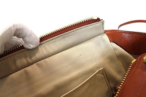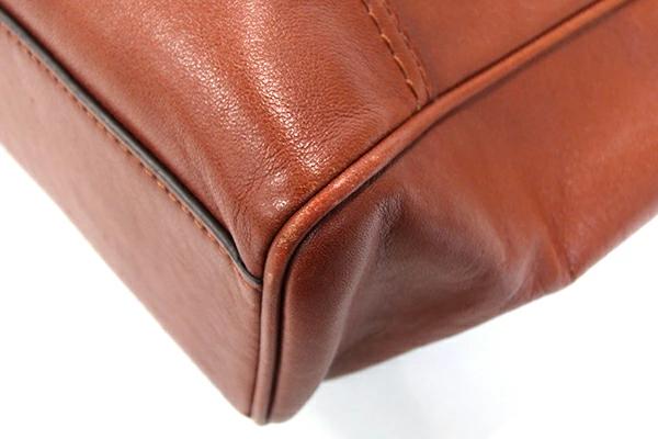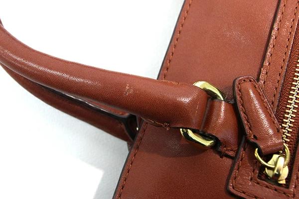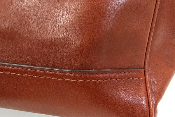 | 状態 | 外側:型崩れあり。所々キズ・引っかき傷・スレ・薄汚れあり。キズやパイピングに色褪せ・色落ち多少あり。ハンドルに濃いヨゴレ、付け根にミドリ酸化ヨゴレあり。 内側:スレ、薄汚れあり。 金具:小キズ、クスミあり。 |