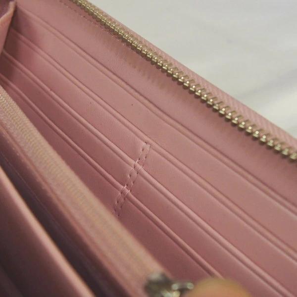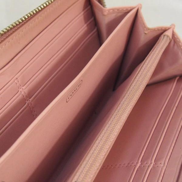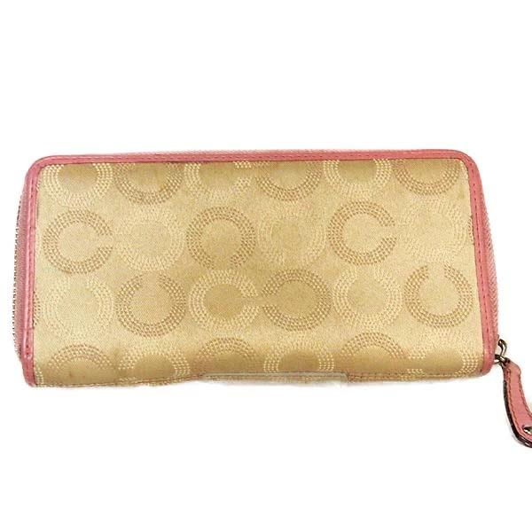 Pre-owned Coach long wallet, round zipper, canvas, beige and pink. [SS]