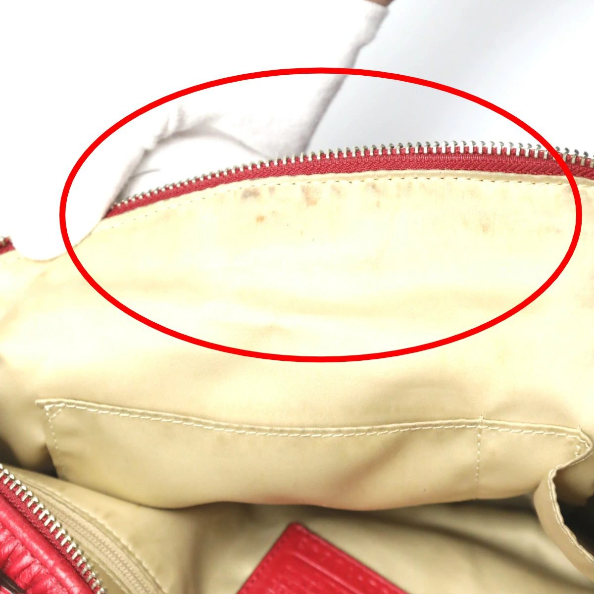 | 外側 | ランク:AB 表面:薄汚れ、スレ、破れ ハンドル・ストラップ:汚れ、スレ コーナー:スレ 角部分にスレあり(画像9,10枚目参照) 底付近破れあり(画像11枚目参照) 底付近にスレや汚れあり ハンドル部分スレ、汚れあり(画像14〜16枚目参照) |