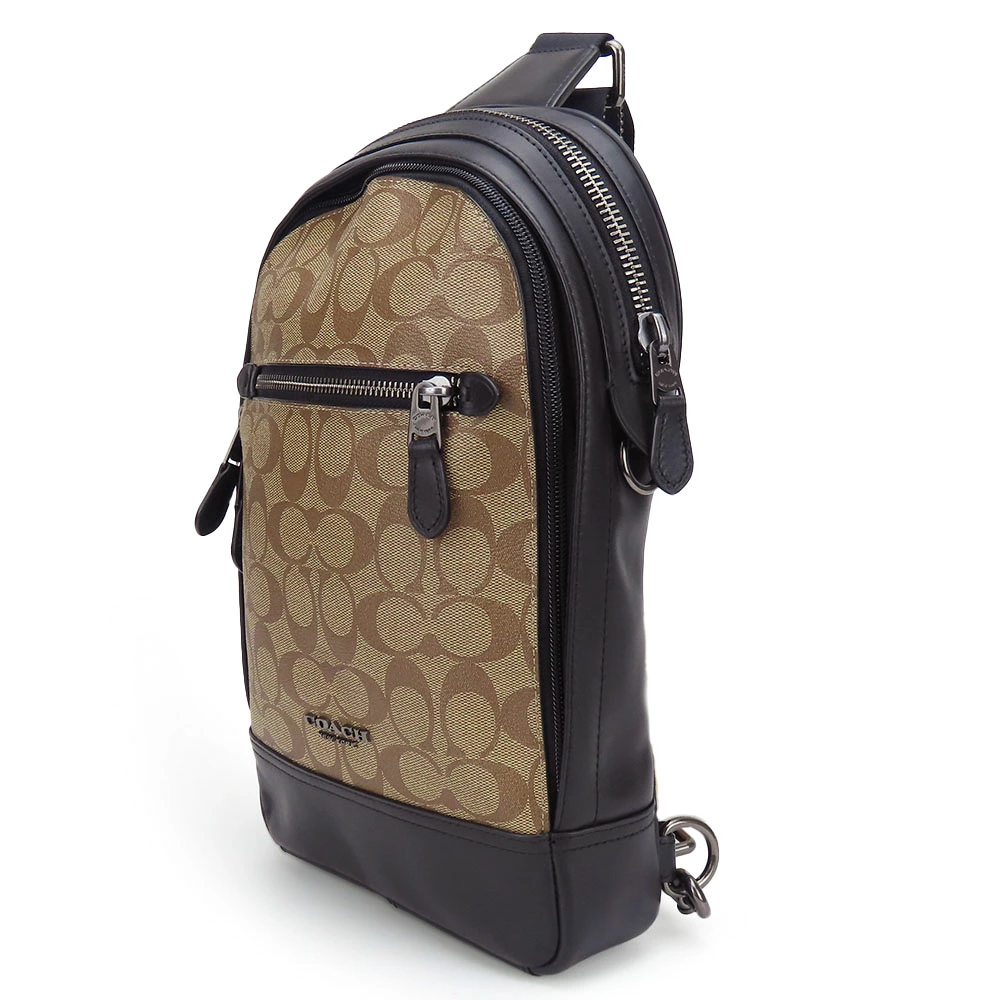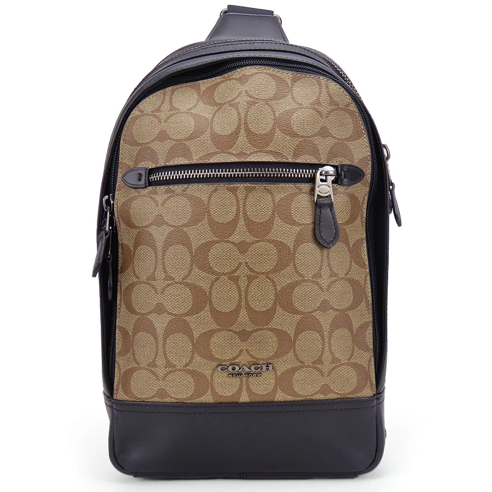 | 品名 | 【中古】 コーチ ショルダーバッグ F37573 シグネチャー PVC レザー カーキ ブラック シルバー金具 ボディバッグ 斜め掛け COACH |