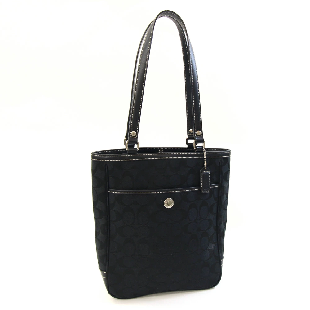 Pre-owned Coach Signature 1464 Tote Bag in Black Canvas and Leather with Logo. Women's.