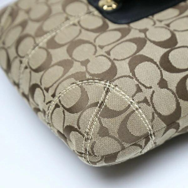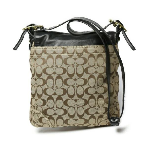 Pre-owned Coach Signature Leather Shoulder Bag 11436 in Black and Beige (SS)