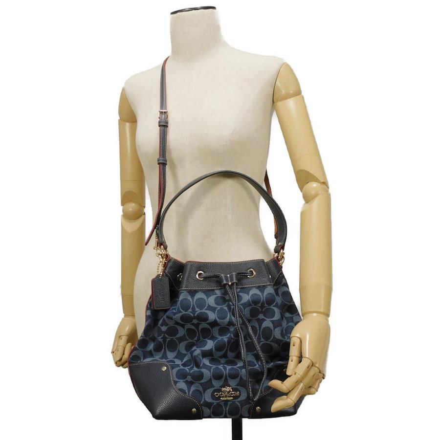 | ジャガードデニムにコーチのメタルロゴがあしらわれた「シグネチャー ミッキー ドローストリング」ハンドバッグです。取り外し可能なストラップでショルダーバッグとしてもお使いいただけます。 |