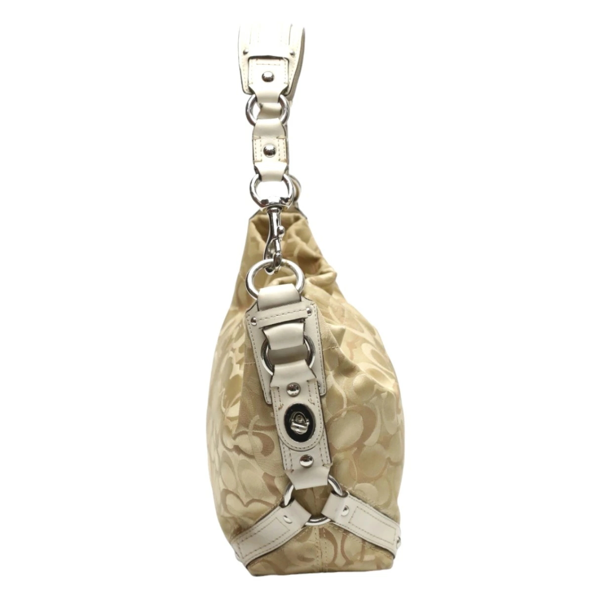 Pre-owned Coach Signature Optic Signature Curly Handbag, F13980, Gold, Stainless Steel, Not Specified