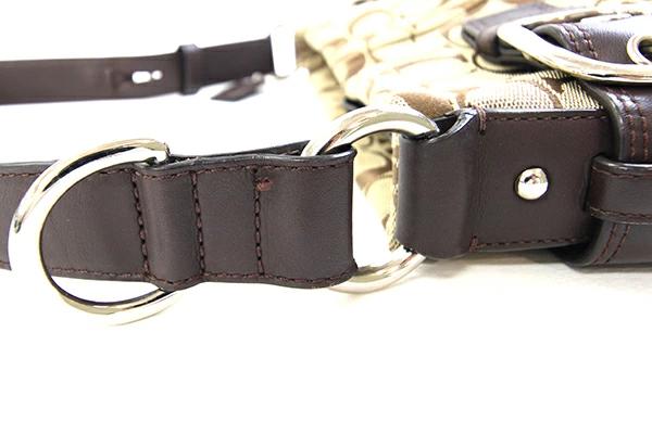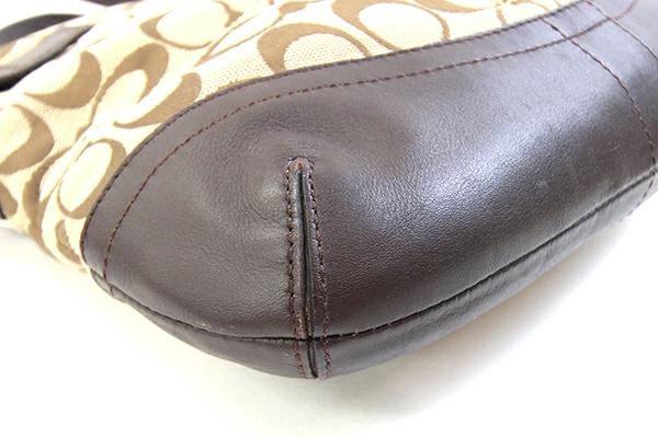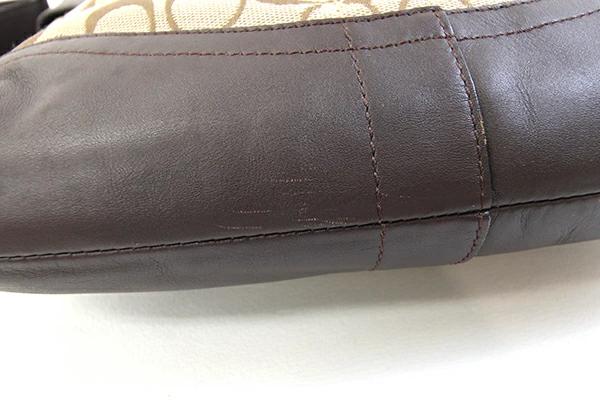 | 状態 | 外側:入口のフチ周り付近にスレや若干毛羽立ちあり。レザーに所々小キズ・スレあり。ショルダーのフチに一部コーティング剥がれあり。 内側:スレ、薄汚れあり。 金具:小キズ、スレあり。 |