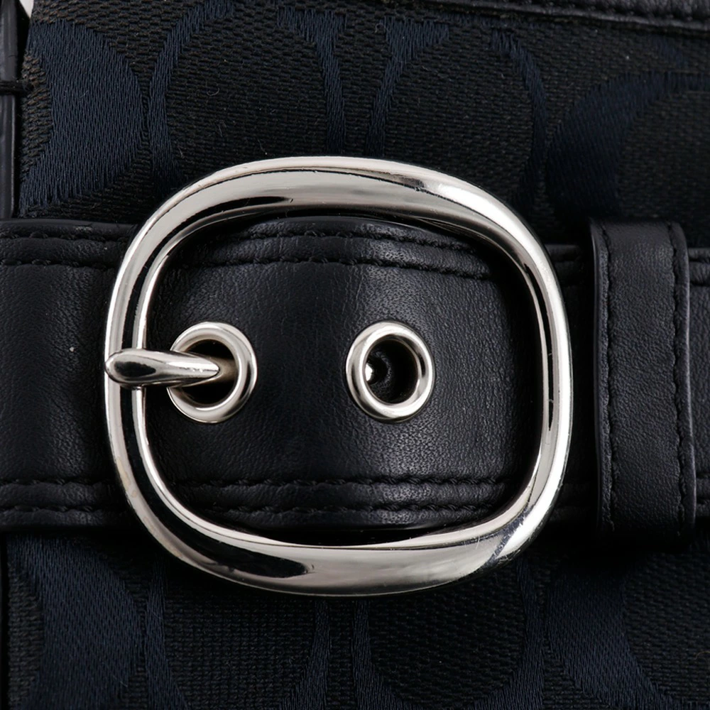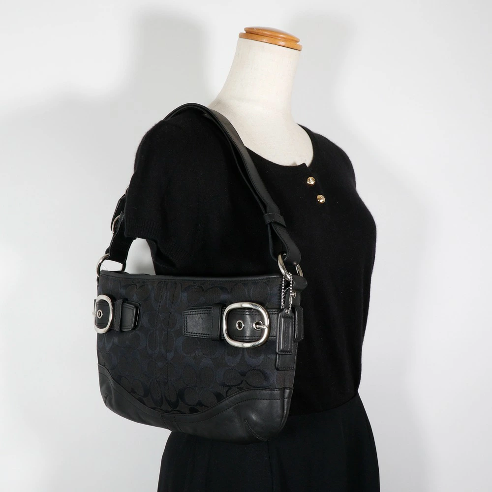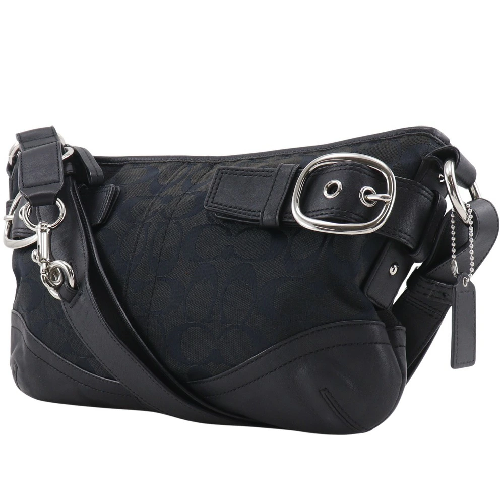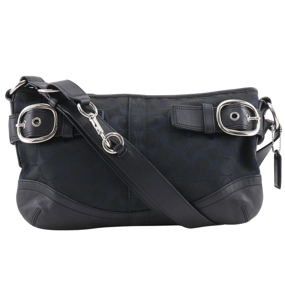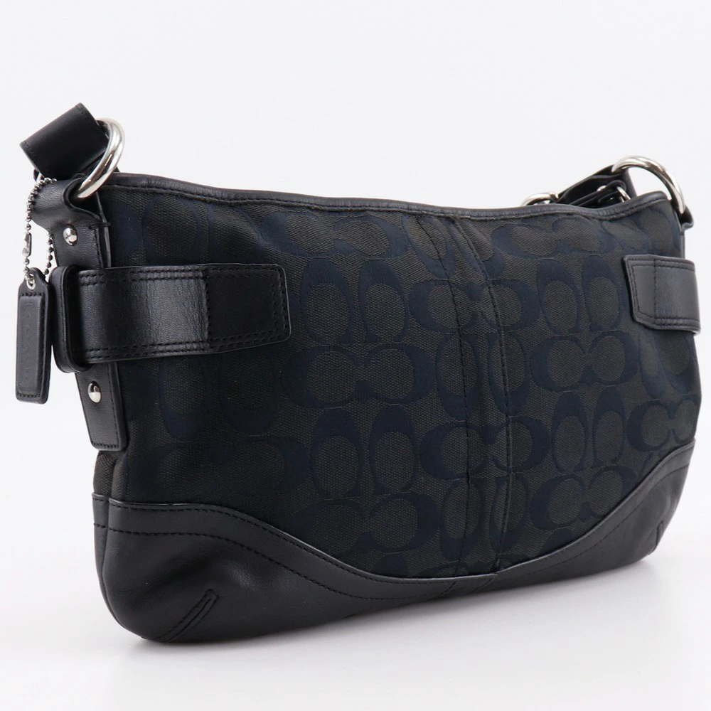 Pre-owned Coach Signature Shoulder Bag F19683, Black Canvas, Crossbody, Zipper Closure, Women's