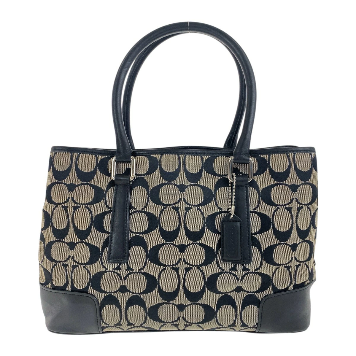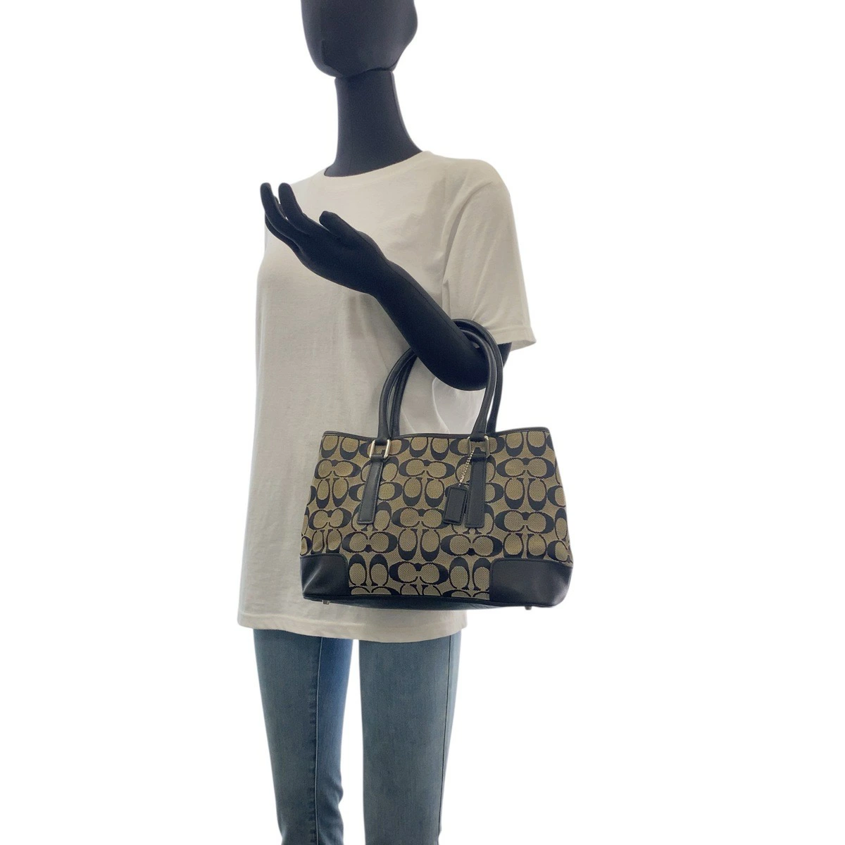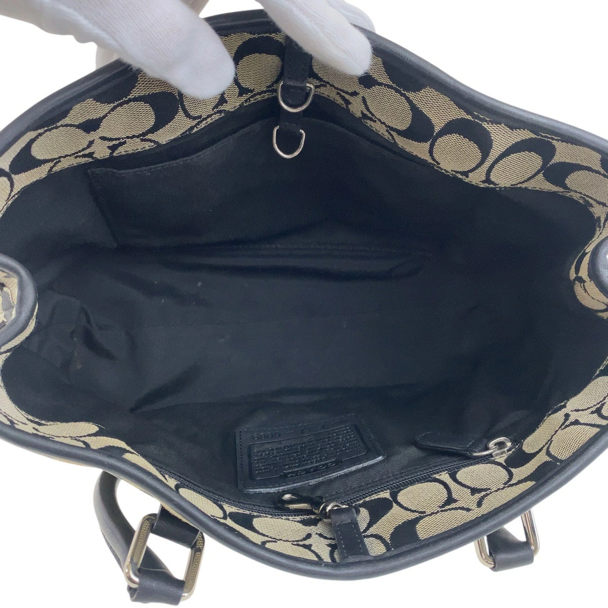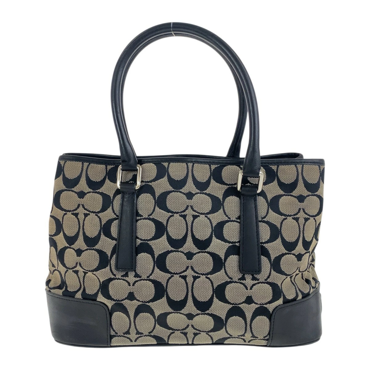 Pre-owned Coach Signature Tote Bag in Black and Gray with Silver Hardware, Canvas and Leather, F2J-6089, Women's, 503987