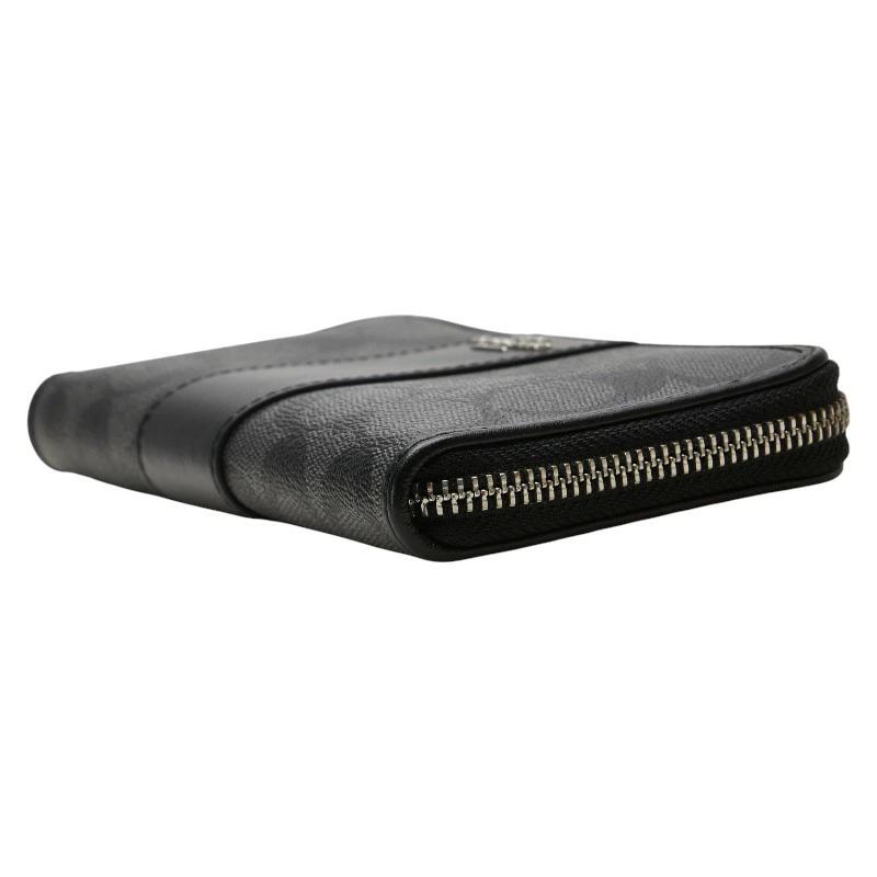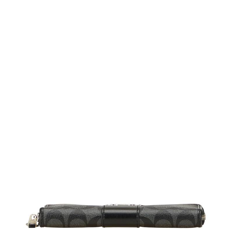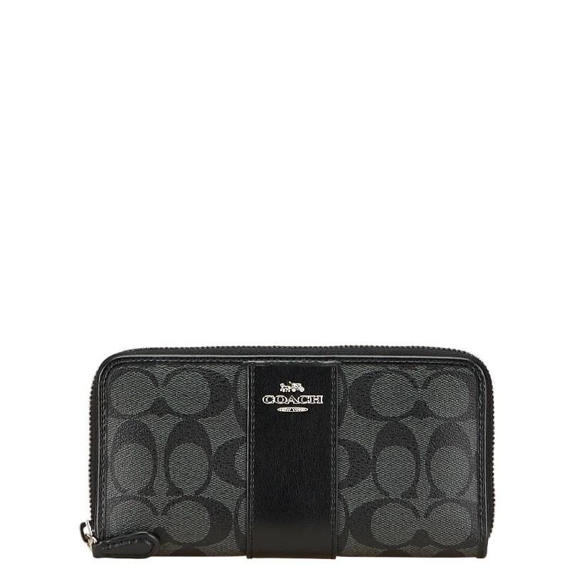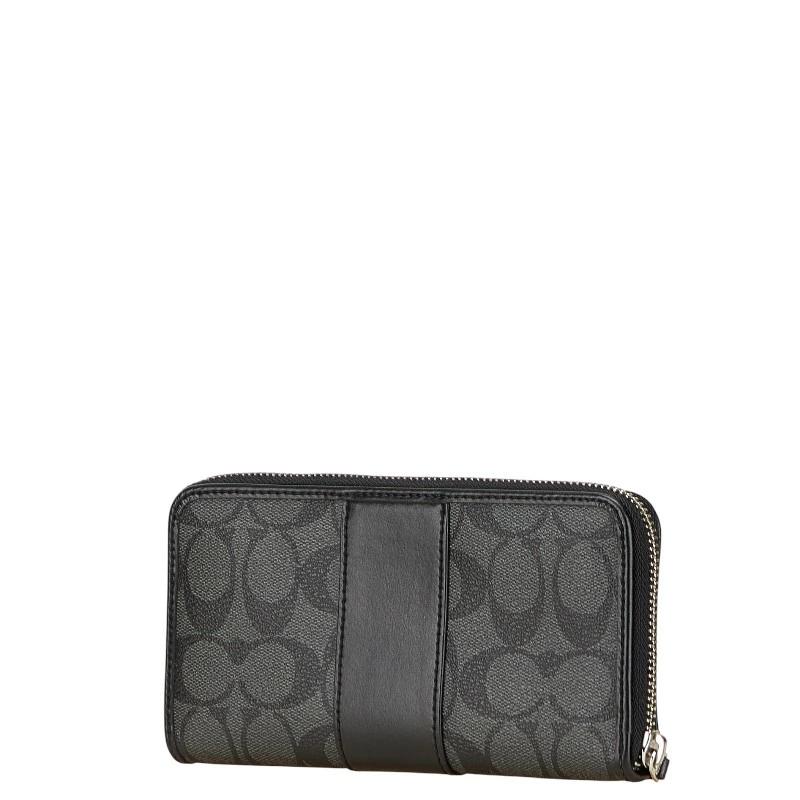 Pre-owned Coach Signature Zip-Around Long Wallet in Gray and Black PVC Leather.