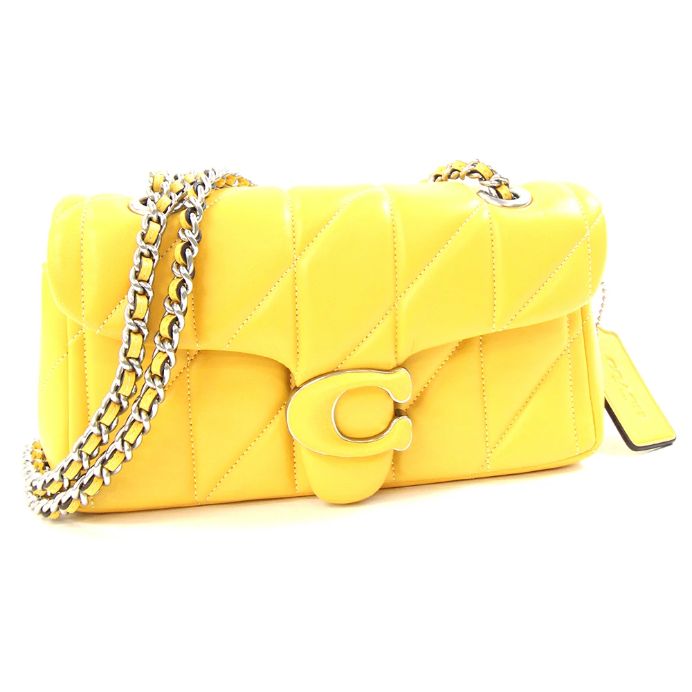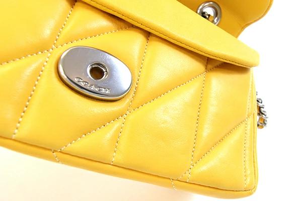 コーチショルダーバッグタビーCP145イエローレザー中古チェーンショルダーミニバッグキルティングレディースCOACH