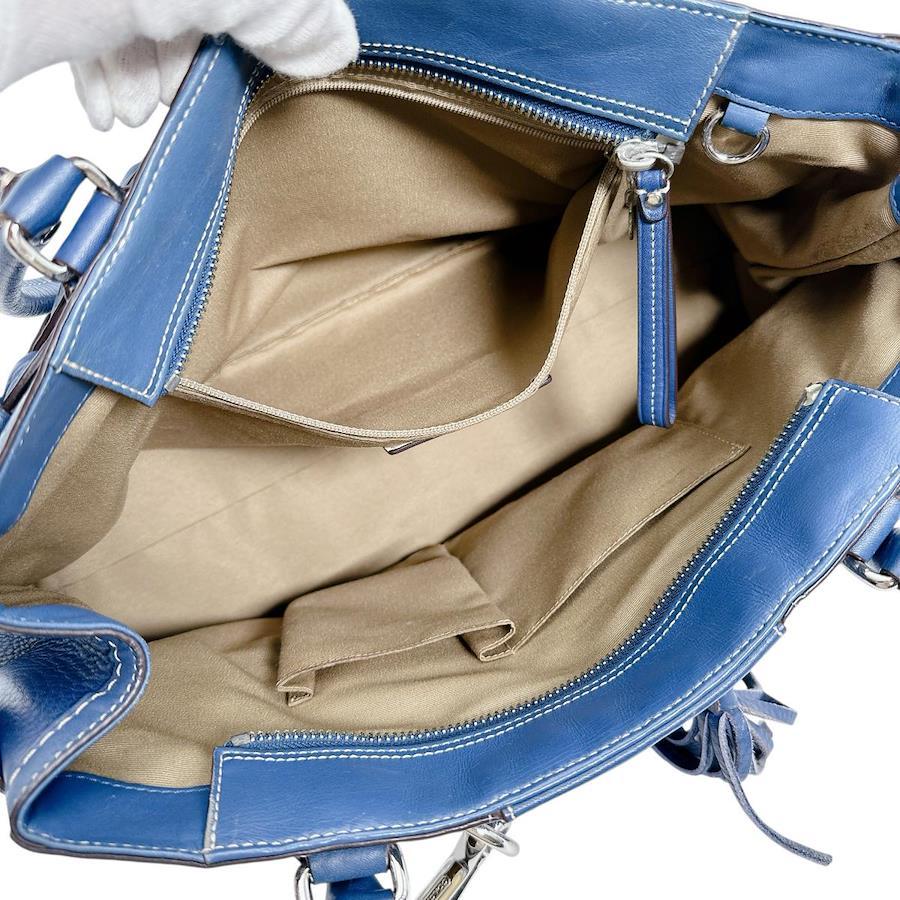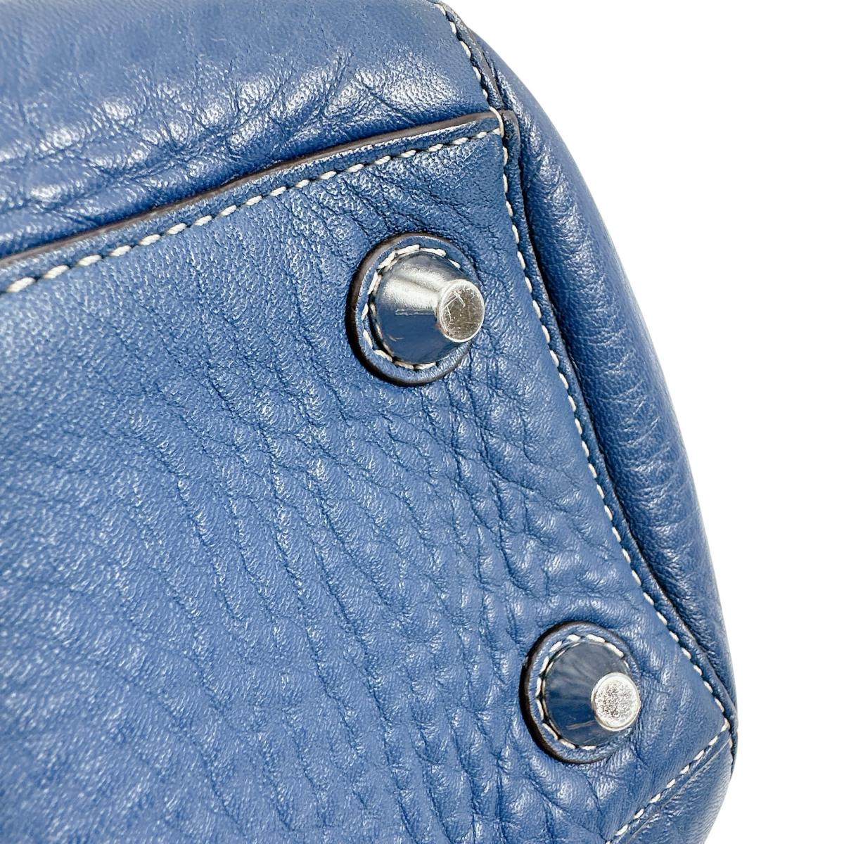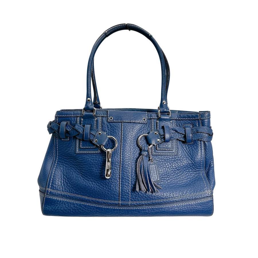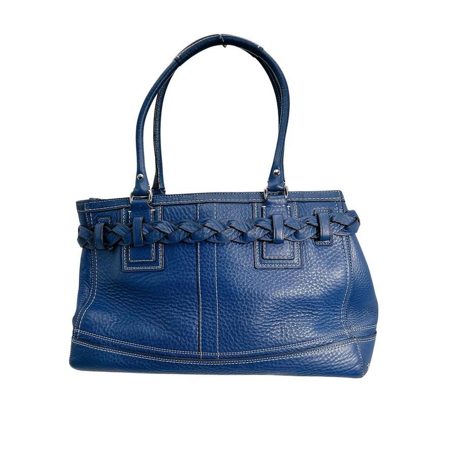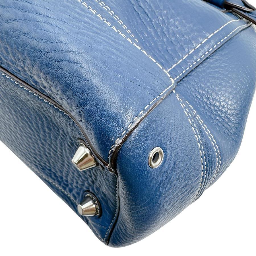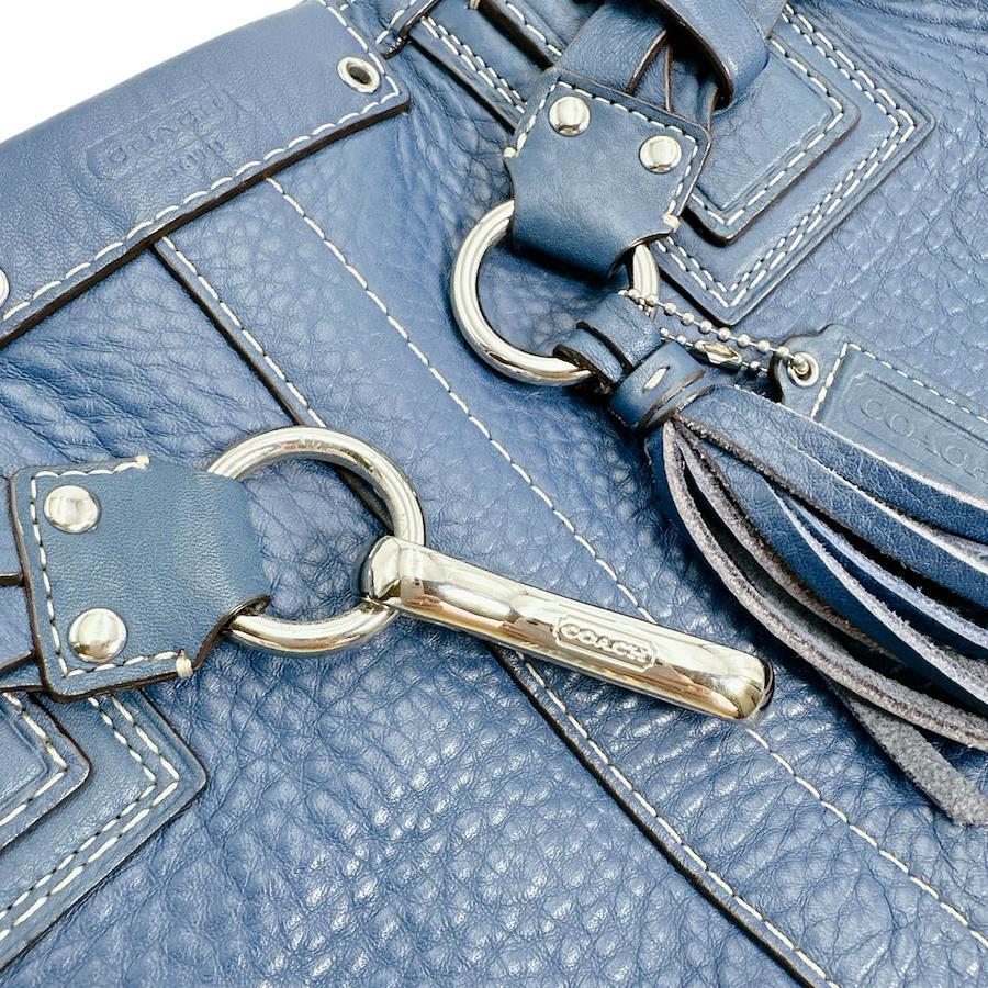 Pre-owned Coach Tote Bag, Handbag, Carryall, Pebble Leather, Blue (E0982-F13087)