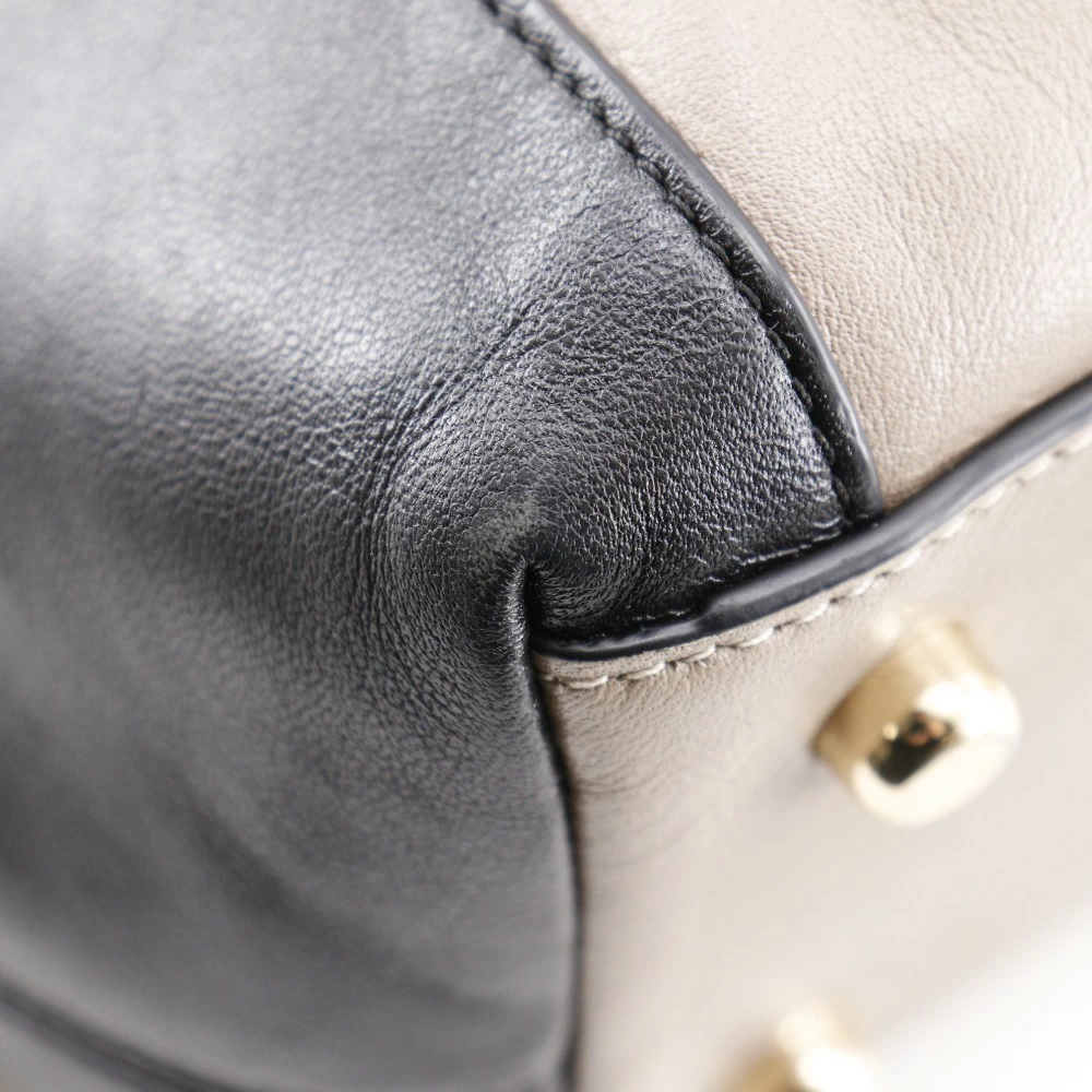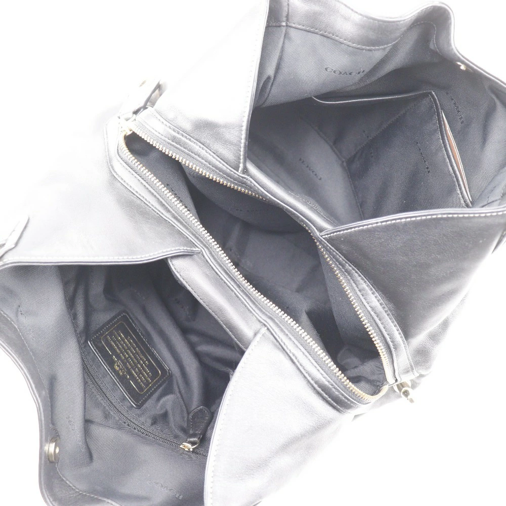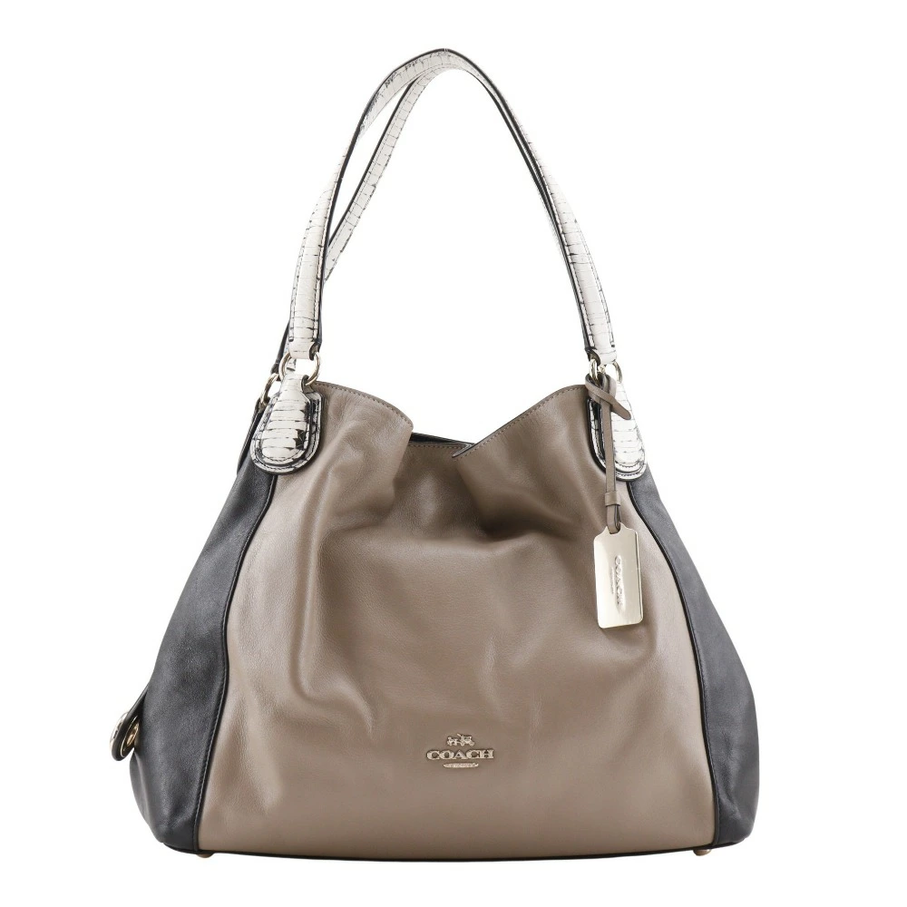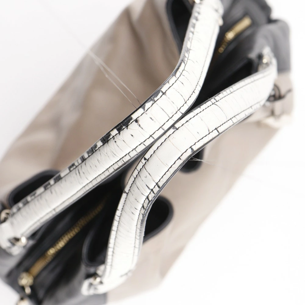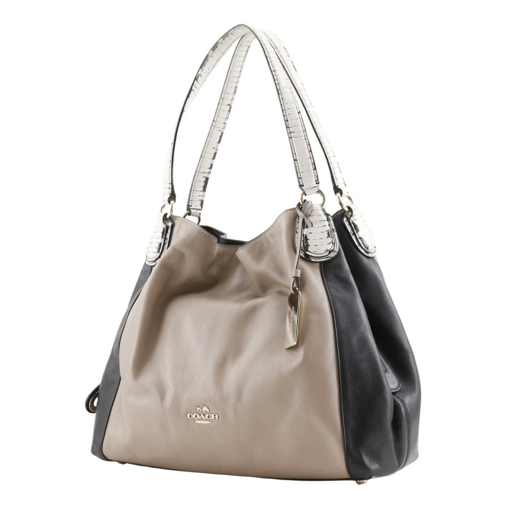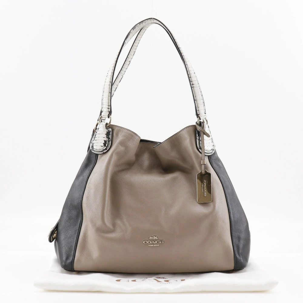 Pre-owned Coach tote bag, leather, beige/black, crossbody, shoulder bag, zipper, women's.