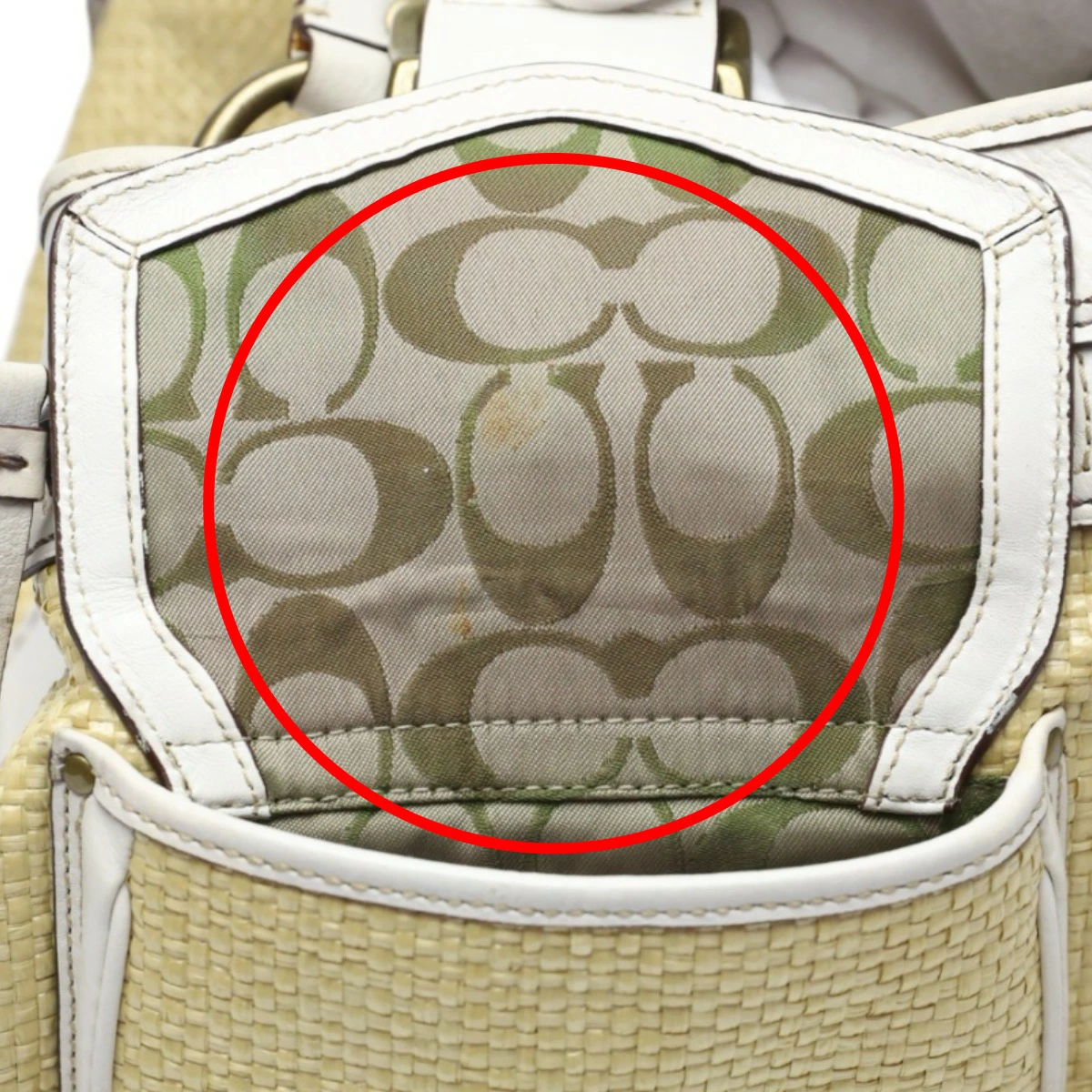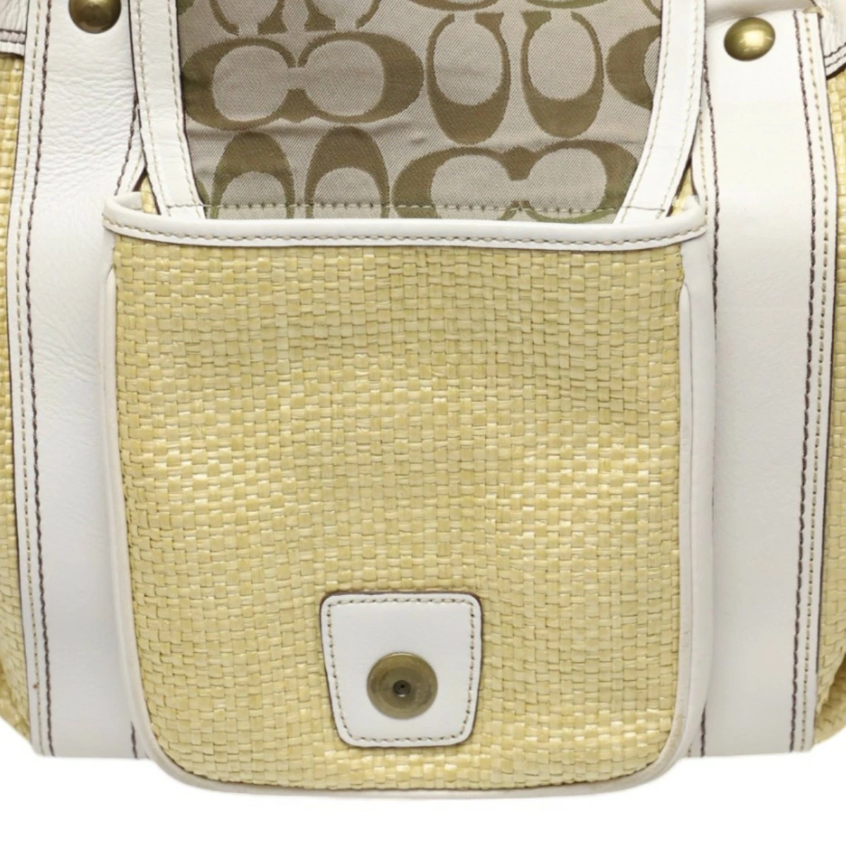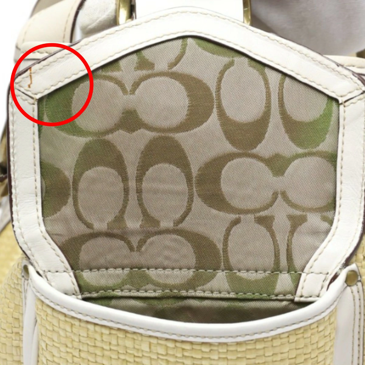 | トートバッグCOACH カゴバッグ ストロー×レザーレディース 114ベージュ |