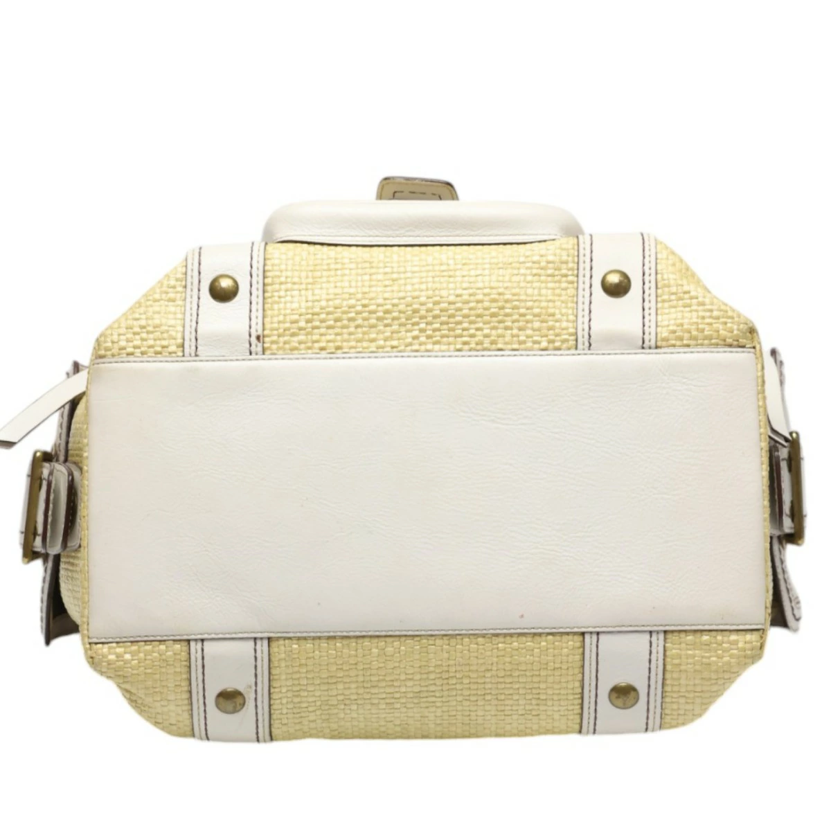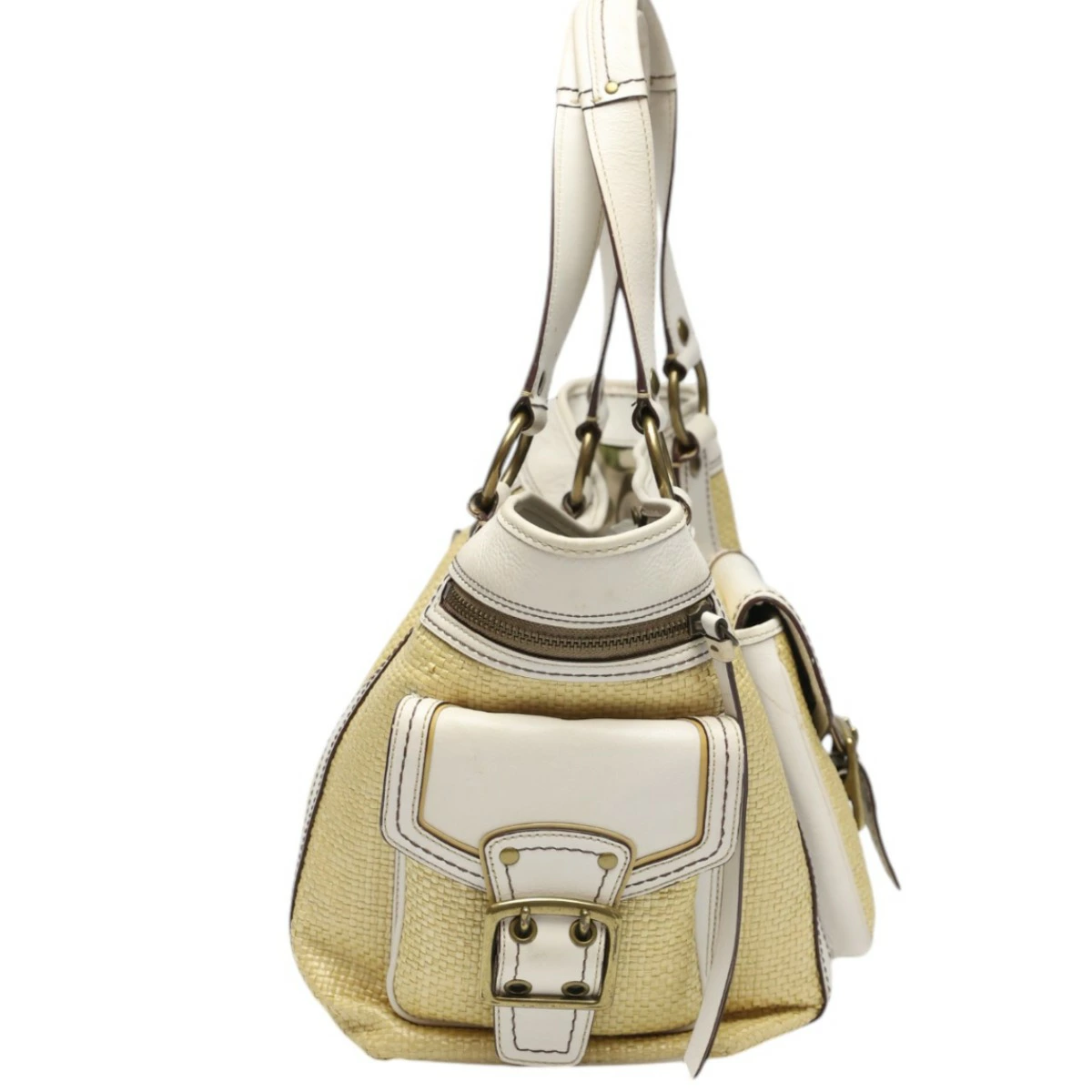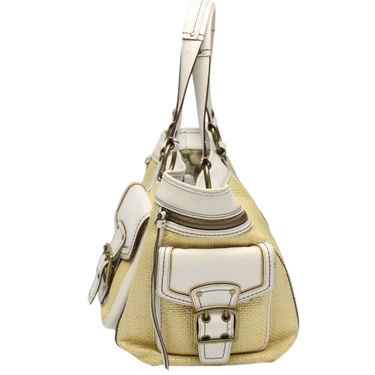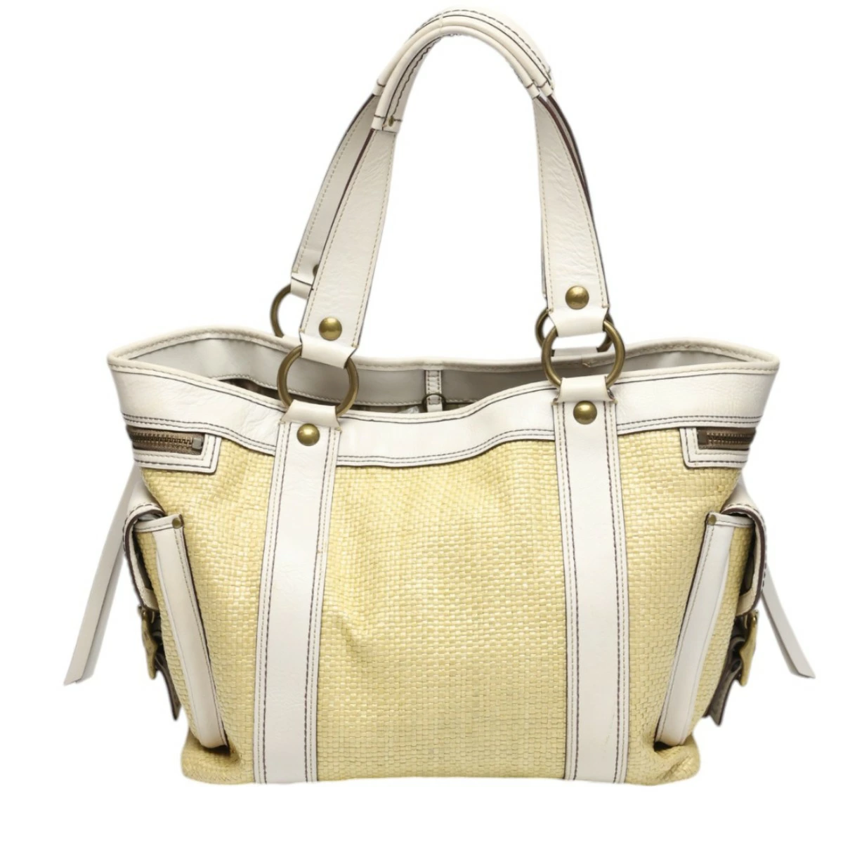 | トートバッグCOACH カゴバッグ ストロー×レザーレディース 114ベージュ |