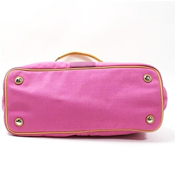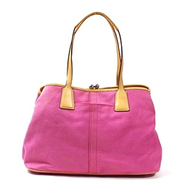 コーチ トートバッグ がま口 肩掛け キャンバス×レザー ピンク 中古 ABランク COACH |レディース 女性 通勤 通学