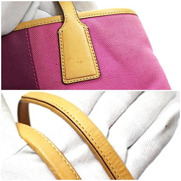 状態 鮮やかなピンクに大きいレザーロゴがお洒落なトートバッグです。 【状態】【外側】・表面 薄汚れやシミ、スレ・角・縁 底部角に若干スレ・金具 底鋲に若干小傷・ポケット 開口部に黄ばみ・持ち手 クセ、一部付け根付近にヒビやシワ【内側】黄ばみや茶ジミあり 【特記事項】シミや薄汚れ等使用感がございますが、機能的ダメージはなくまだまだご使用いただける商品です。あくまでも中古品である事をご理解の上お買い求め下さい。 【仕様】マグネット式開閉外側/オープンポケット1内側/オープンポケット2、ファスナーポケット1、仕切り兼がま口ポケット1