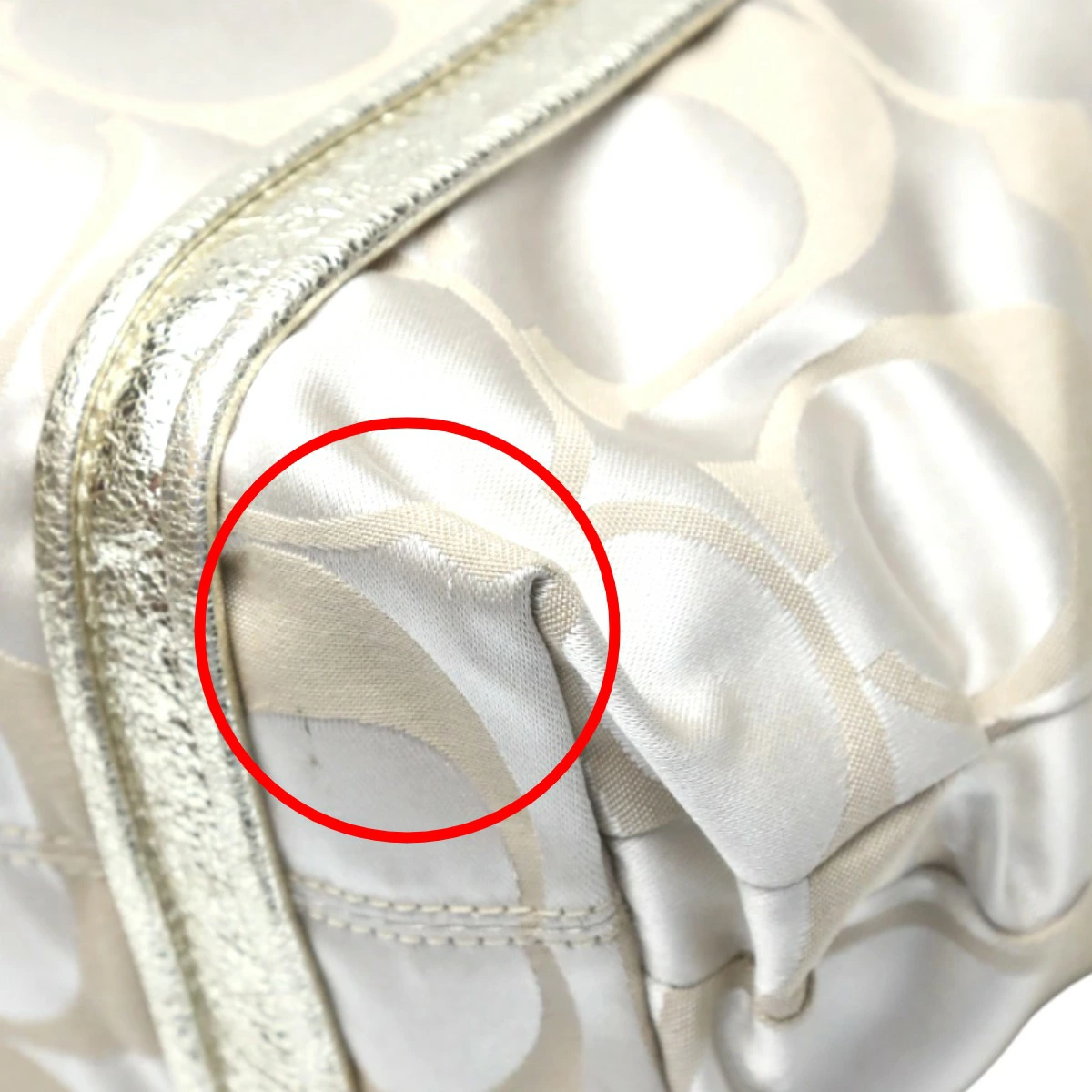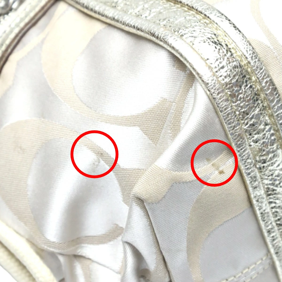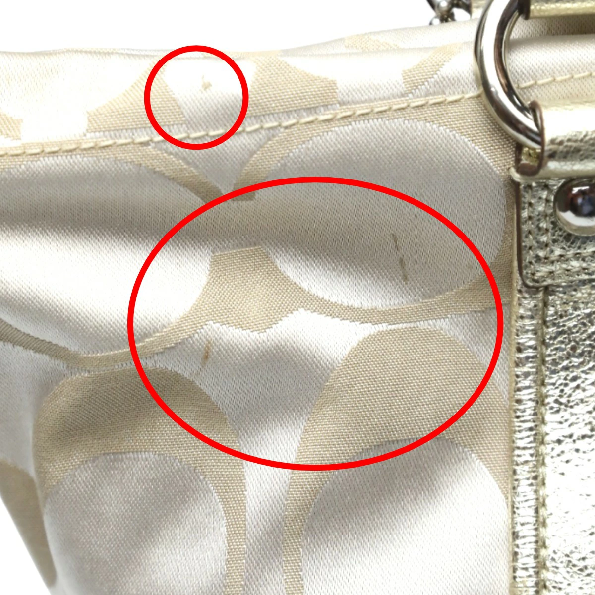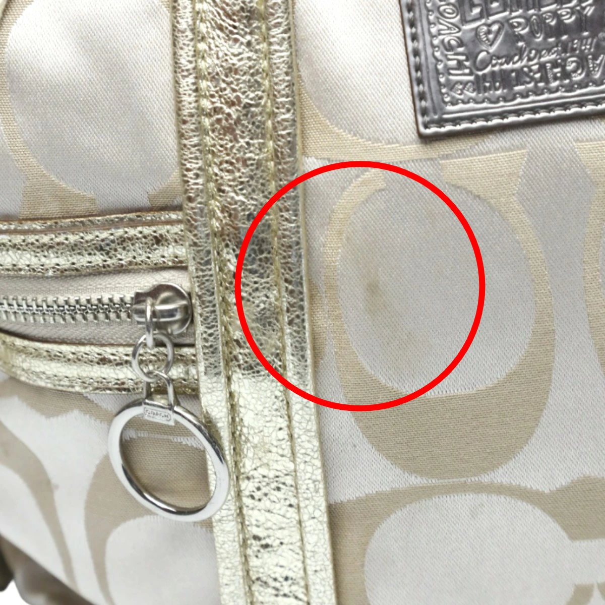 コーチ COACH トートバッグ ショルダーバッグ シグネチャー ポピー サテン スポットライト レザー 13843 ベージュ×ゴールド 【SS】 【中古】