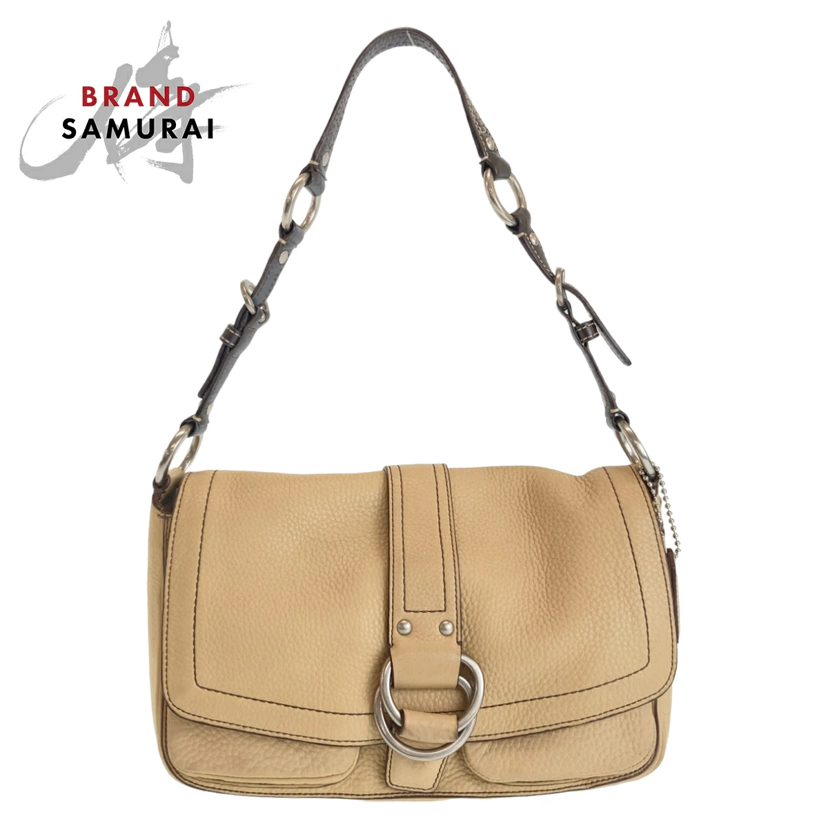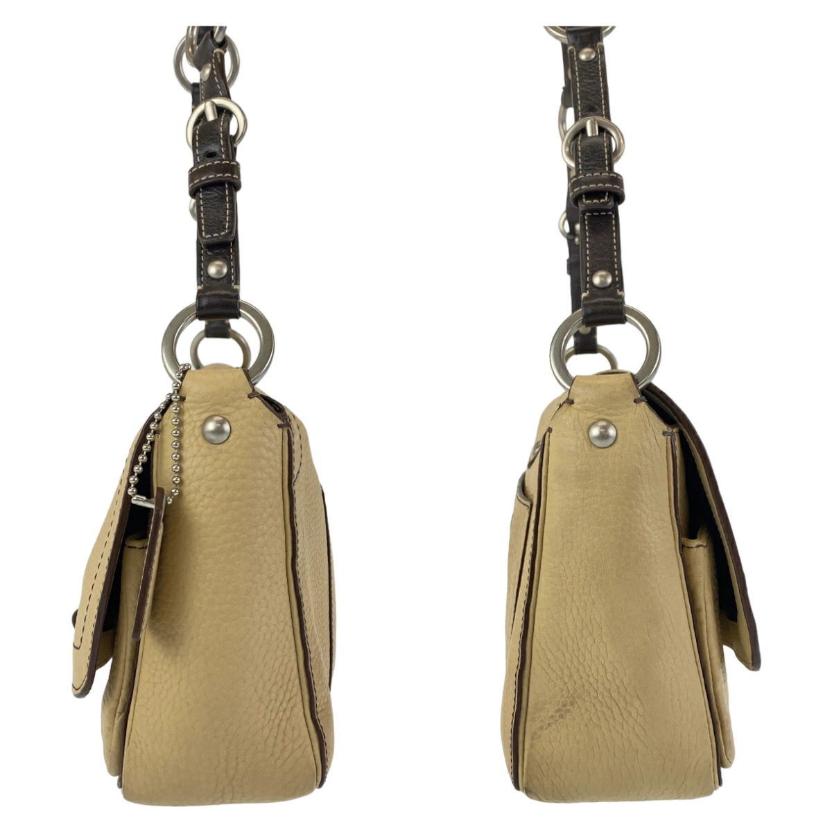 Pre-owned Coach Women's Beige/Brown Leather Shoulder Bag with Silver Hardware, 407603