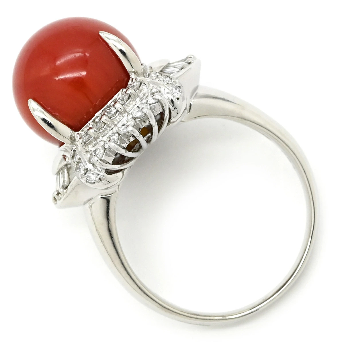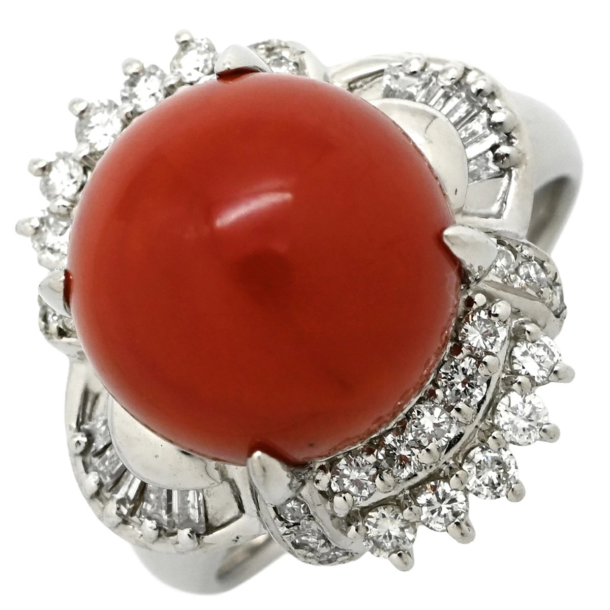ノンブランド NON BRAND リング 指輪 珊瑚 ダイヤリング Pt900 珊瑚 プラチナシルバー 赤 サンゴ 14号 レディース定番 人気 美品 【中古】