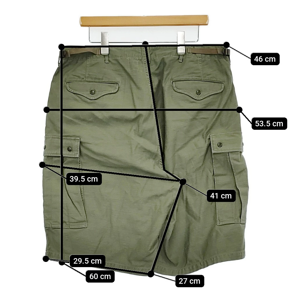 | 実寸サイズ | 総丈:約60cm ウエスト:約46cm 股上:約41cm 股下:約27cm ヒップ:約53.5cm ワタリ幅:約39.5cm 裾幅:約29.5cm ※採寸画像がある商品はハンガーに吊るした状態での計測のため、平置きでの採寸とは差が生じる場合がございます。平置きでの実寸サイズをご希望の場合は、ご購入前に必ずご質問ください。 ※記載以外のサイズが合わないことを理由とした返品はできませんので、 記載部分以外で実寸サイズの気になる箇所があれば必ず購入前にご質問ください。 |