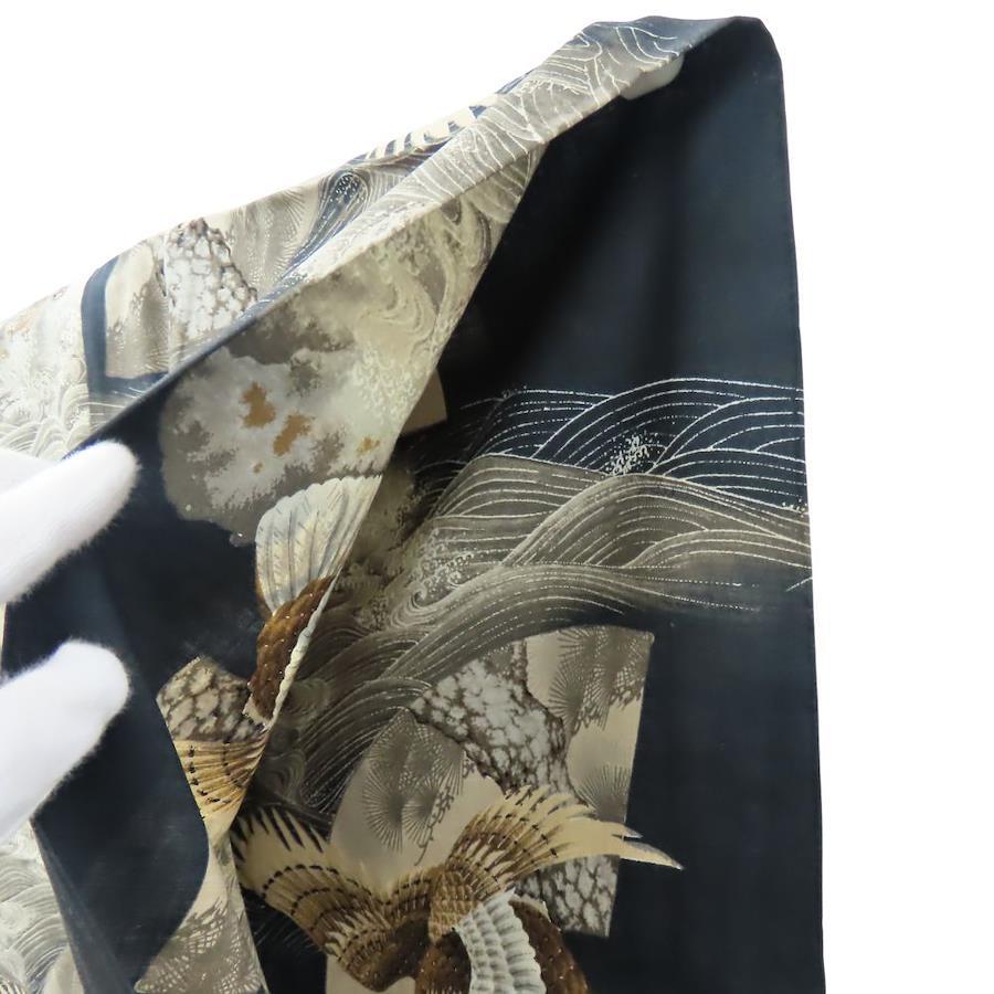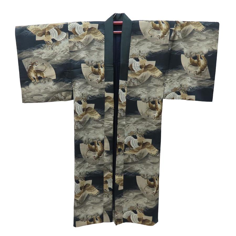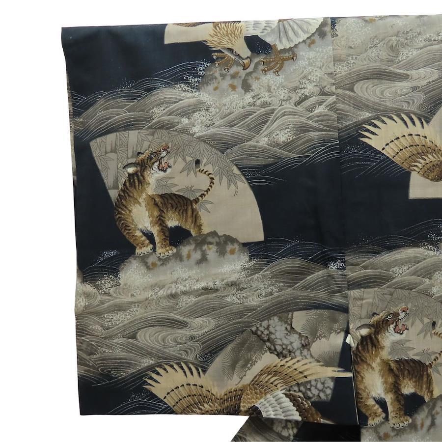 品名【中古】 襦袢 綿 ブラック ブラウン ネイビー モスリン 鷹 虎 メンズ 男性
