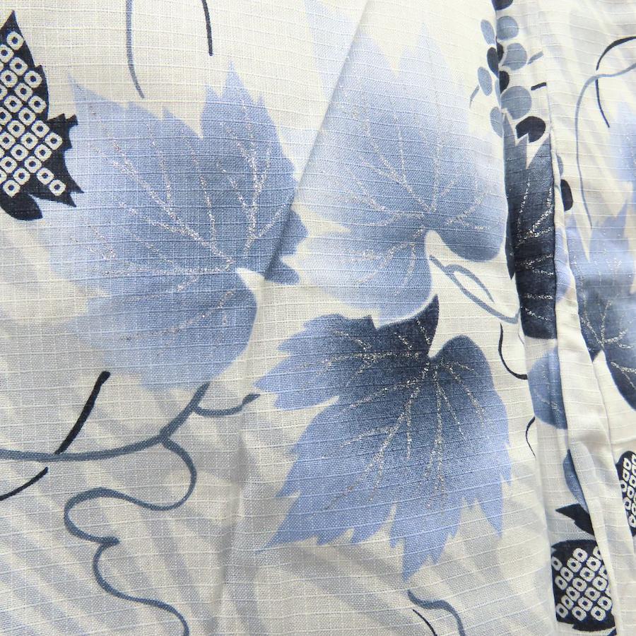 [Pre-owned] Cotton Yukata (Kimono) in White and Purple with a Unique Fabric and Lamé. Suitable for Japanese Clothing, Kimono, and Women.