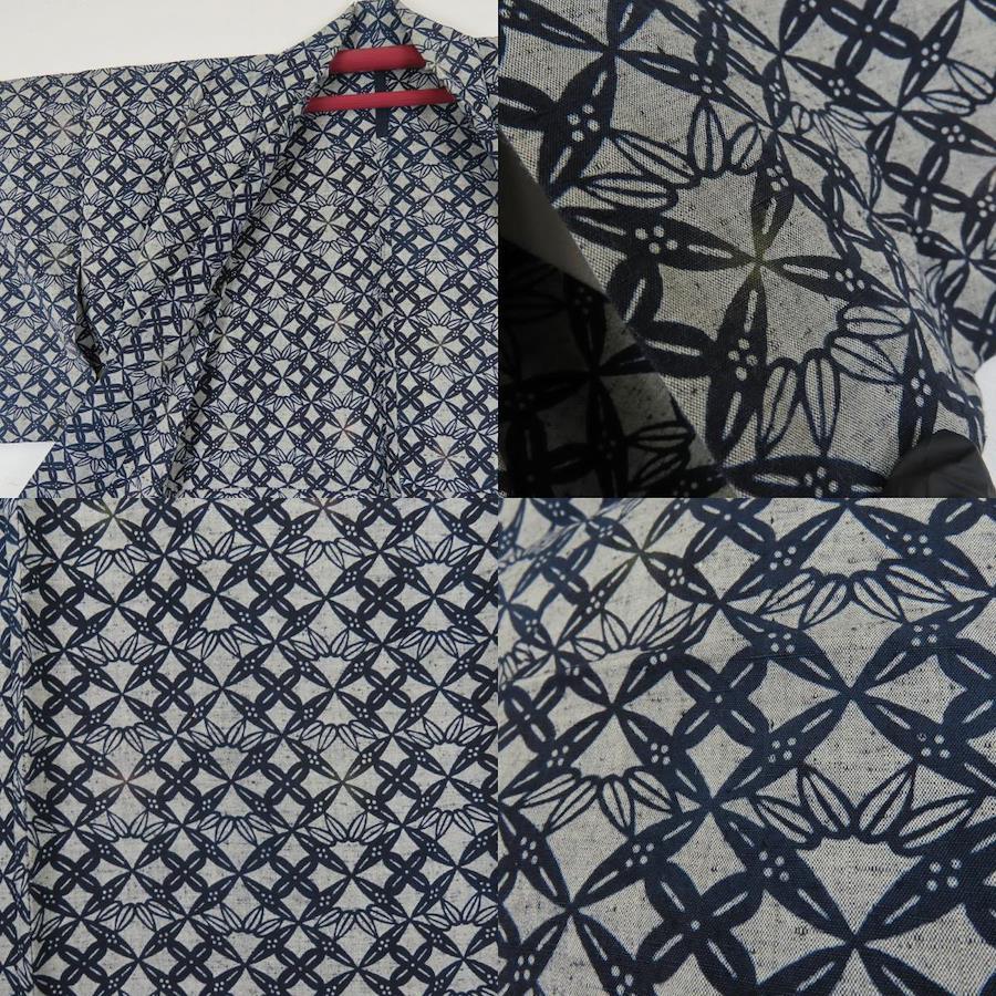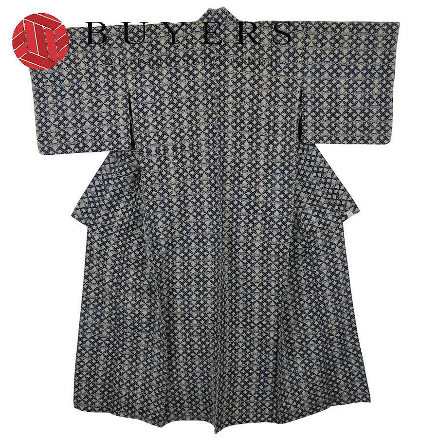 | 品名 | 【中古】 浴衣 綿 紺 灰色 幾何学模様 モダン お洒落 レディース 女性 |