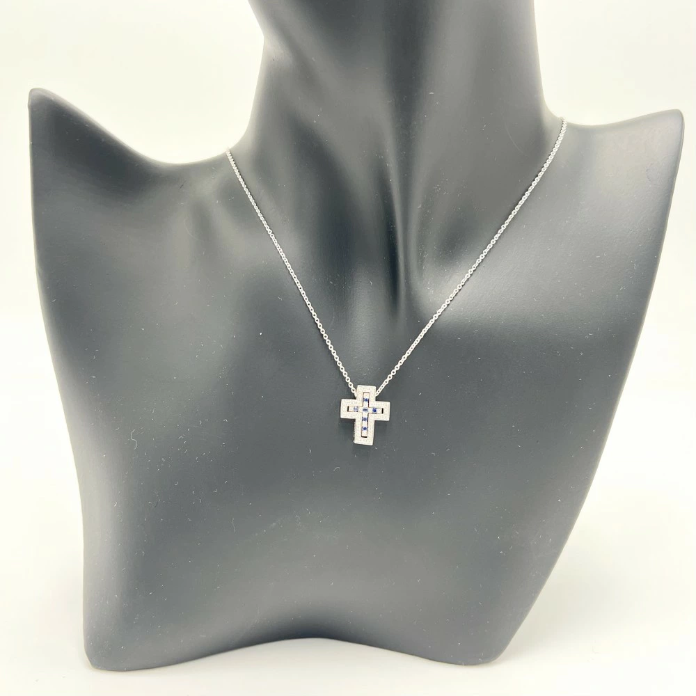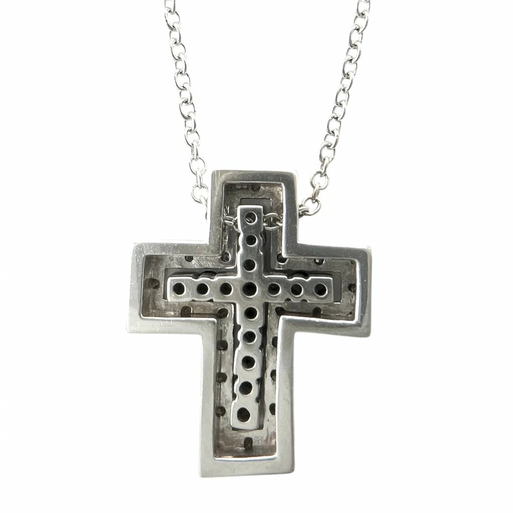 Pre-owned Damiani Belle Epoque XXS unisex necklace with adjustable strap. Pendant cross design in 18k white gold (Au750) with diamonds. Approximately 4.7g.