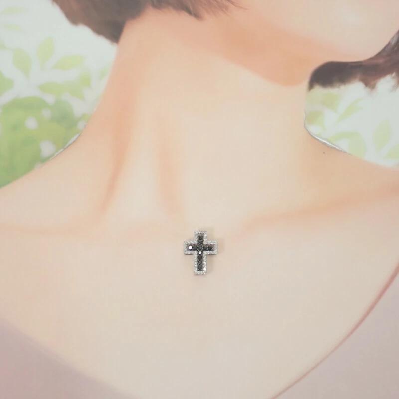 ダイヤモンドとブラックダイヤモンドを贅沢にセットした、洗練されたクロスモチーフのペンダントトップです。