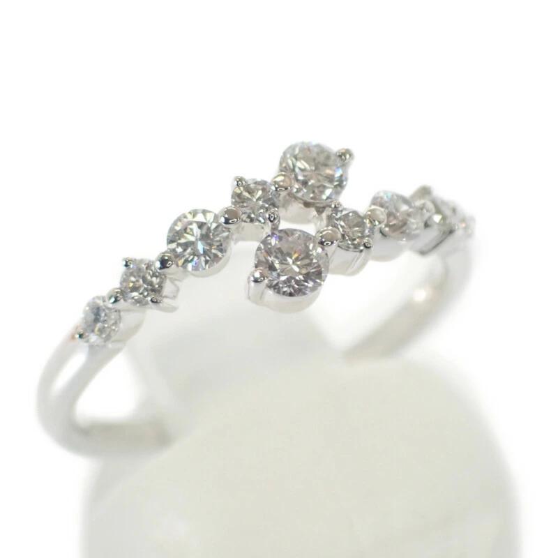 煌めくダイヤモンドが指先を彩るデザインリングです。