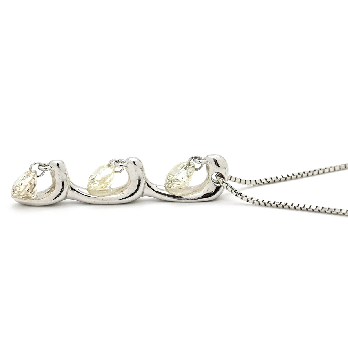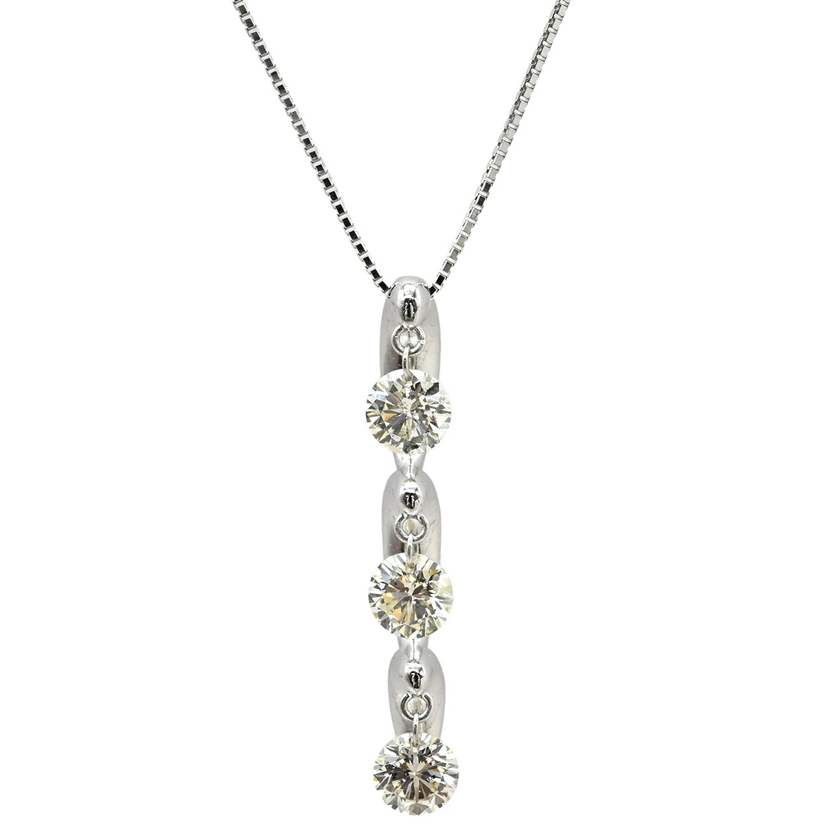 ノンブランド NON BRAND ネックレス ダイヤペンダント K18WG ダイヤモンド ホワイトゴールド 3P 3粒 スリーストーンネックレス 18K WG Au750 - レディース定番 人気 美品 【中古】