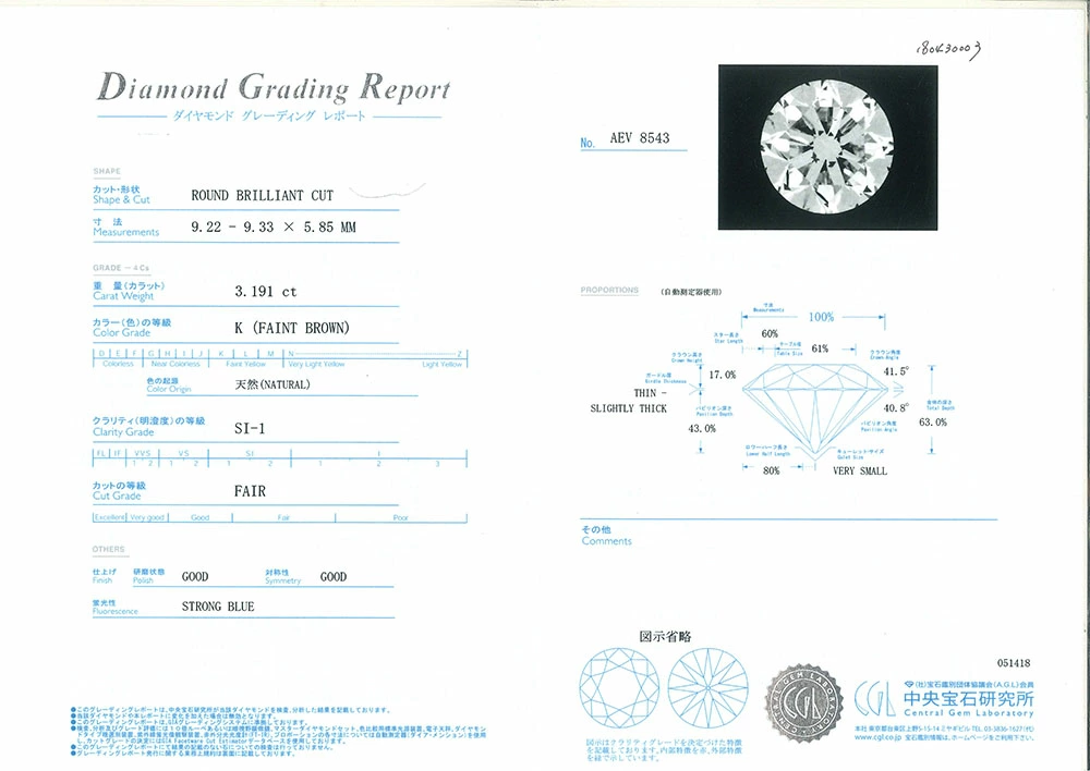 | 付属品 | 鑑定書・ソーティング (中央宝石研究所) |