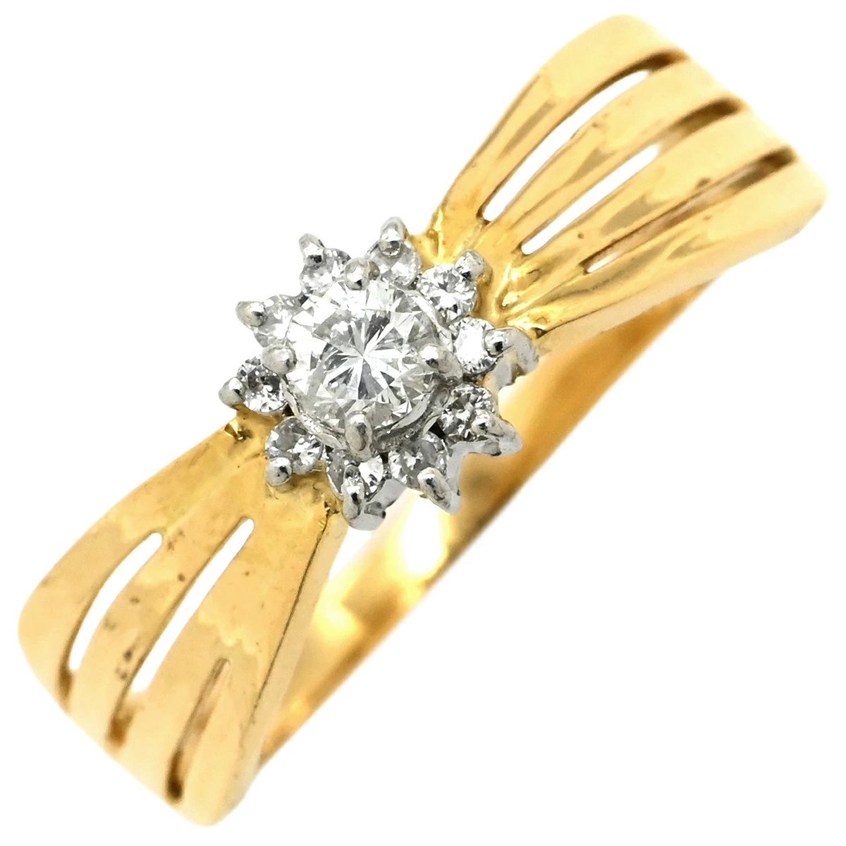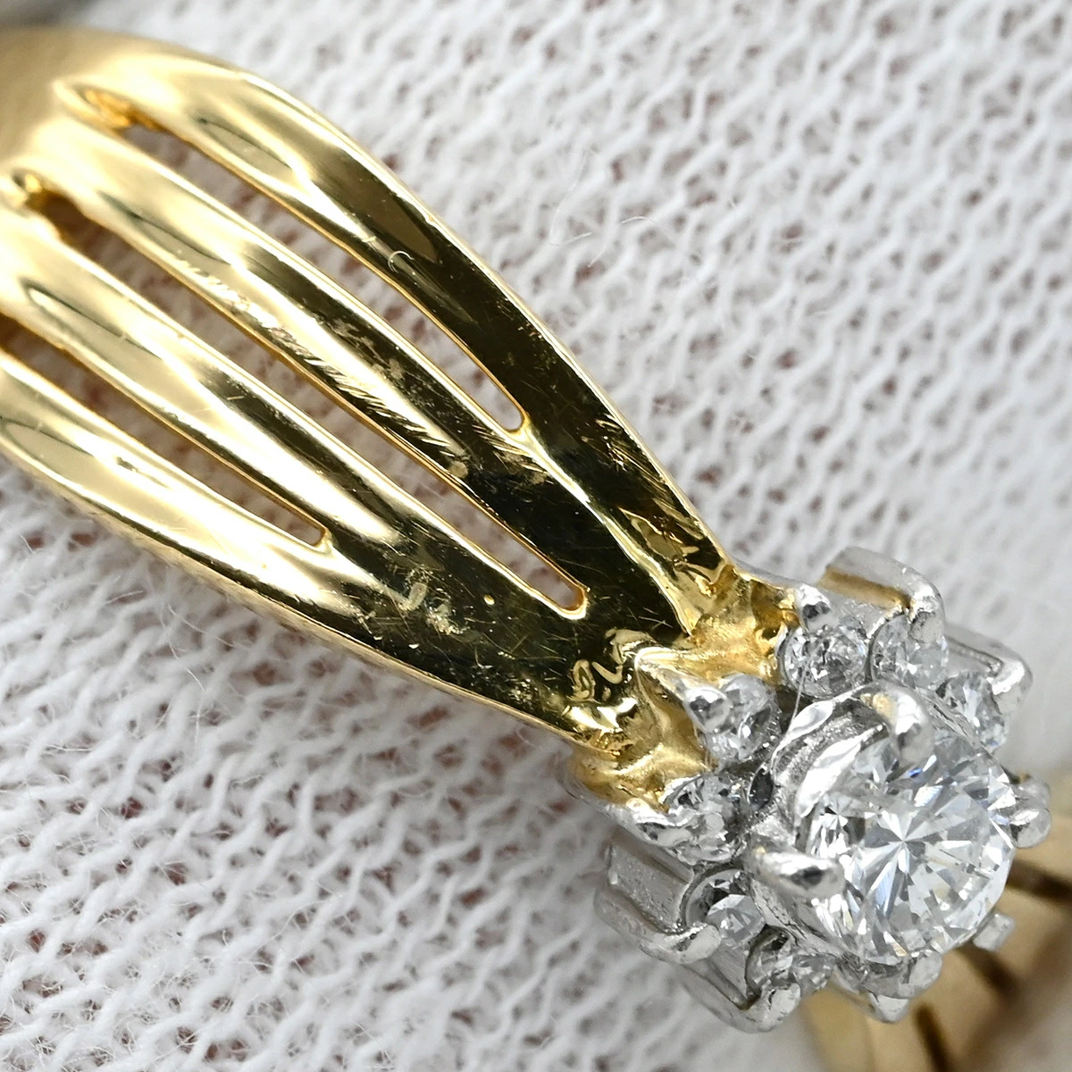 ノンブランド NON BRAND リング 指輪 ダイヤリング K18YG ダイヤモンド Pt900 イエローゴールドXプラチナシルバー フラワー 花 15号 メンズ レディース ユニセックス 【中古】