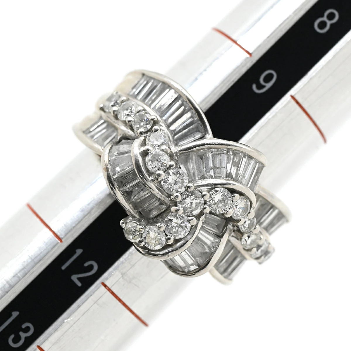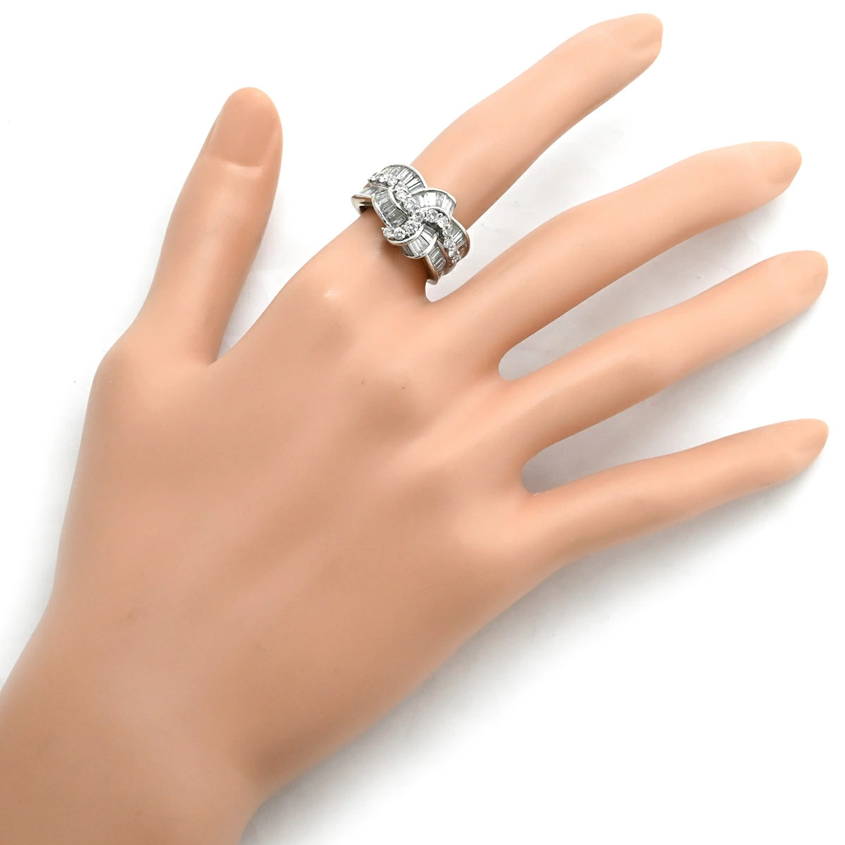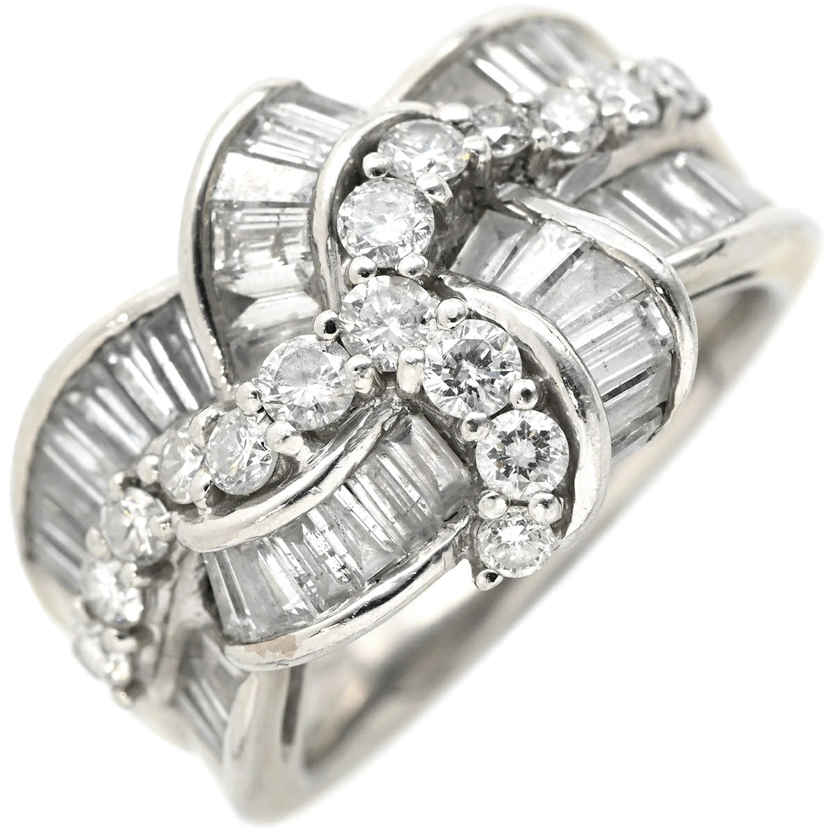 ノンブランド NON BRAND リング 指輪 ダイヤモンド リング Pt900 ダイヤモンド プラチナシルバー プラチナム テーパード バケット ラウンドブリリアント リボンモチーフ - 10号 レディース定番 人気 美品 【中古】