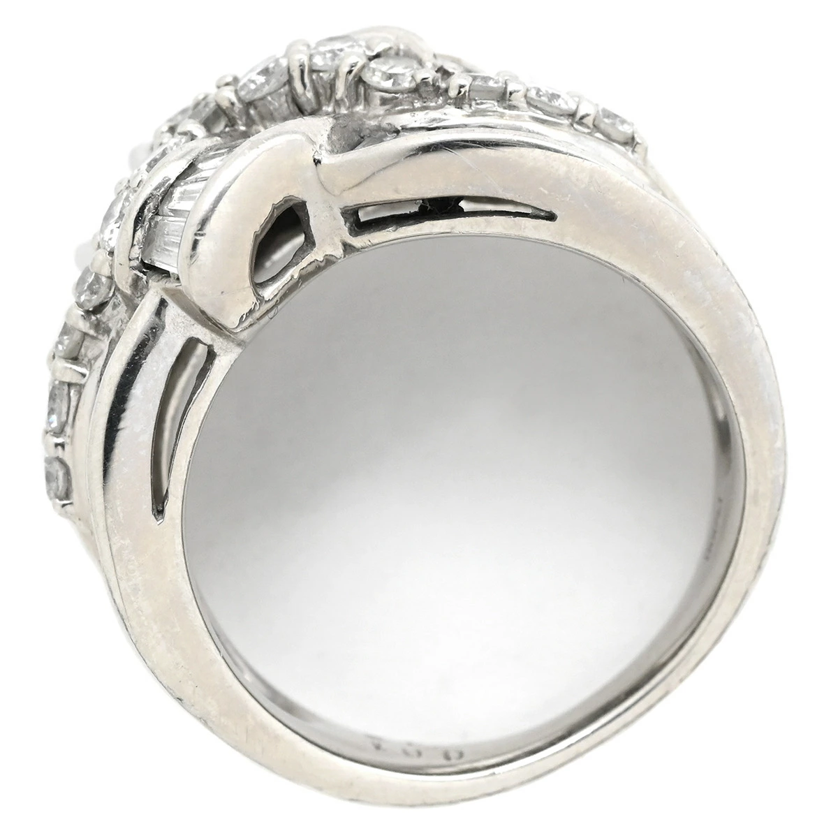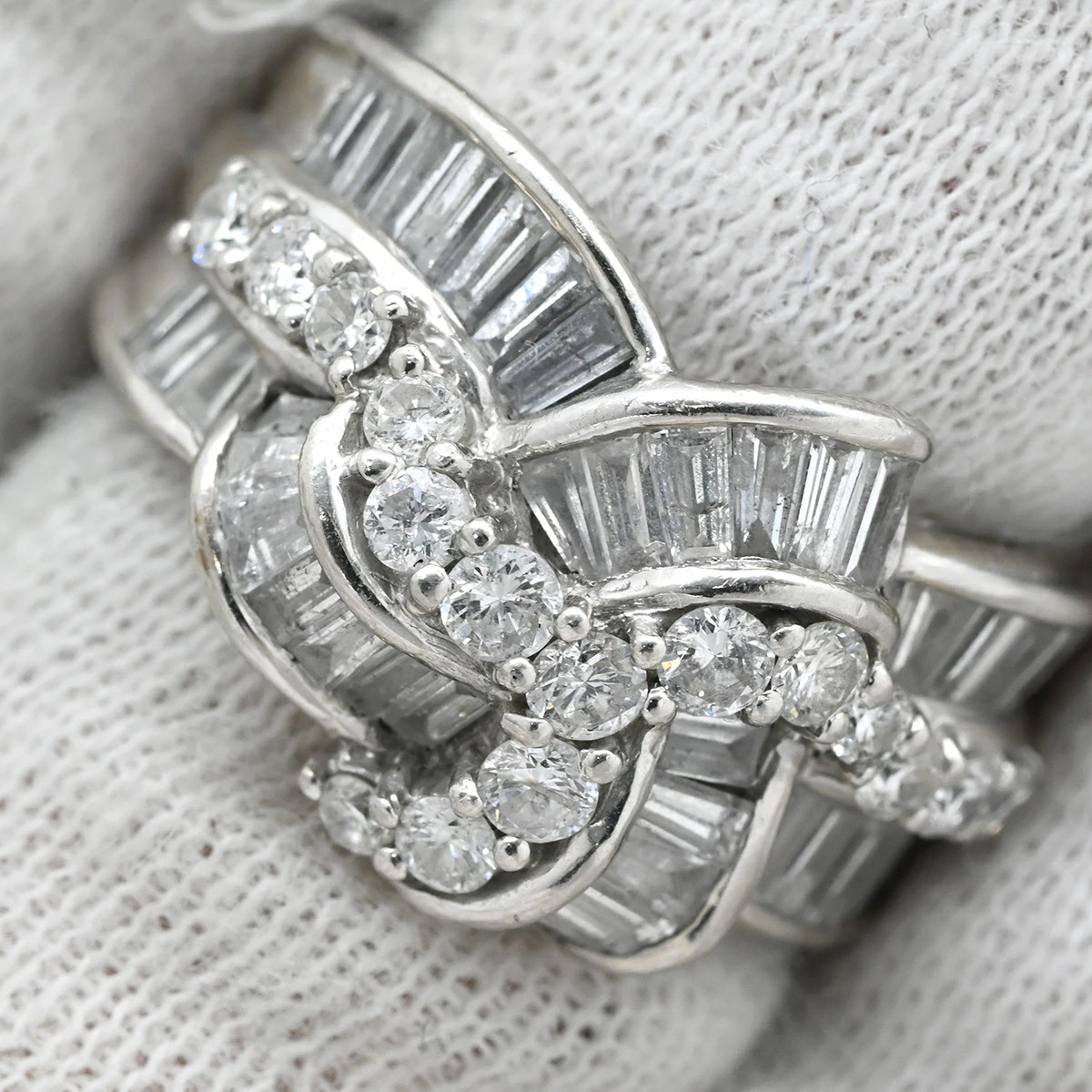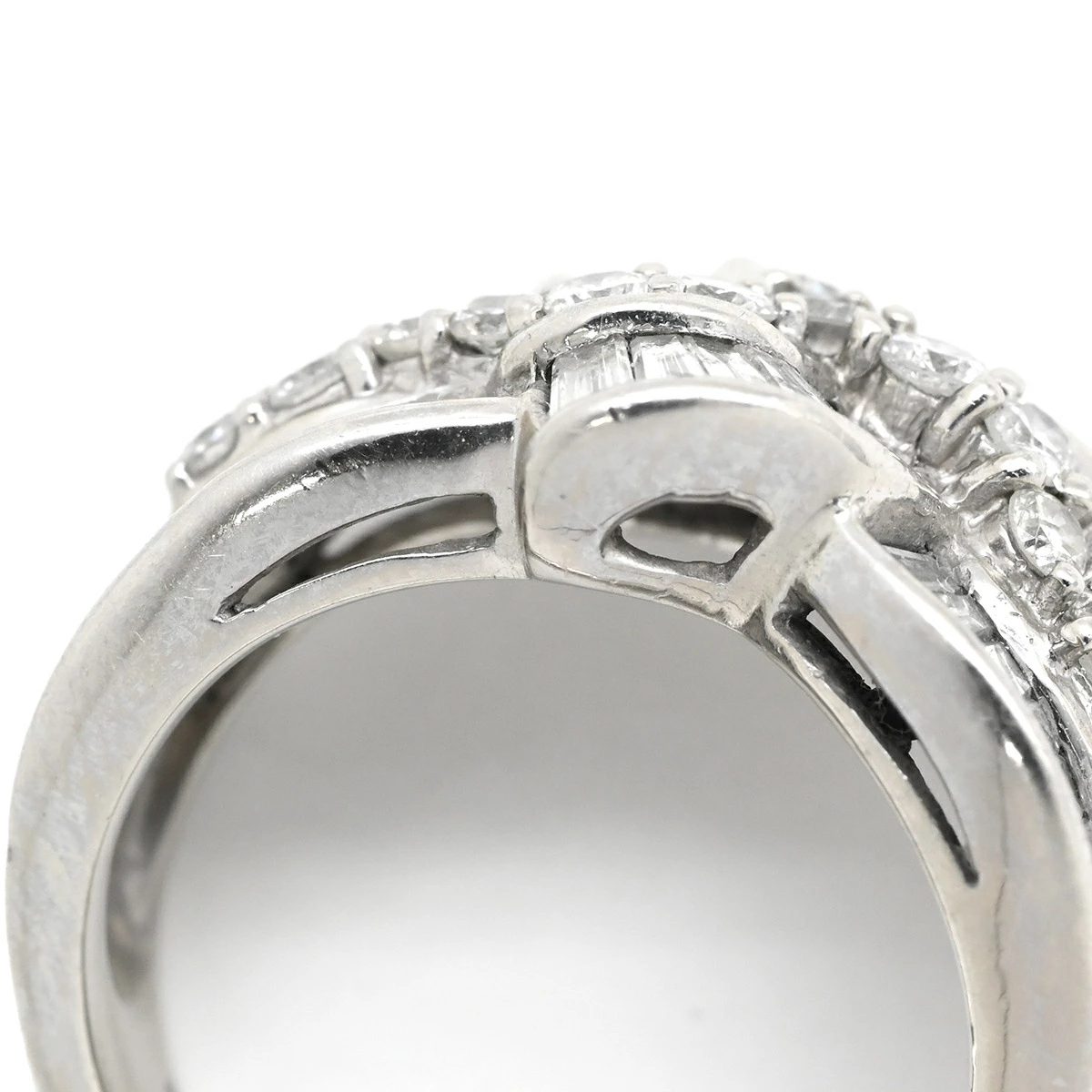 ノンブランド NON BRAND リング 指輪 ダイヤモンド リング Pt900 ダイヤモンド プラチナシルバー プラチナム テーパード バケット ラウンドブリリアント リボンモチーフ - 10号 レディース定番 人気 美品 【中古】