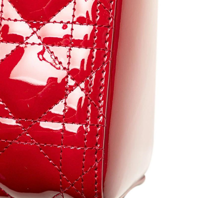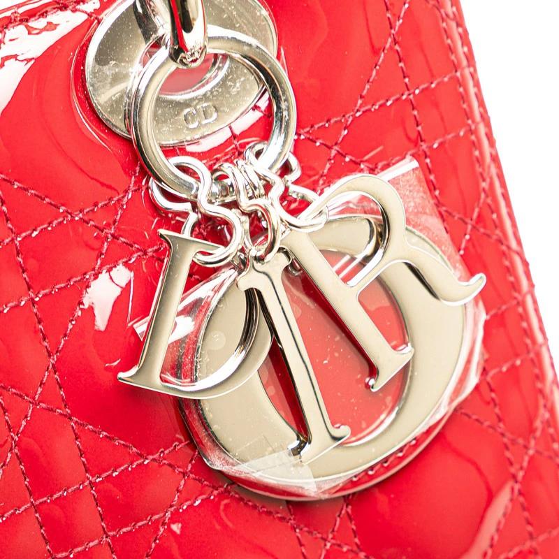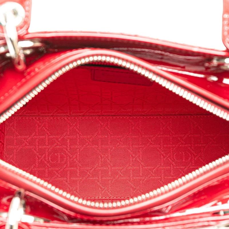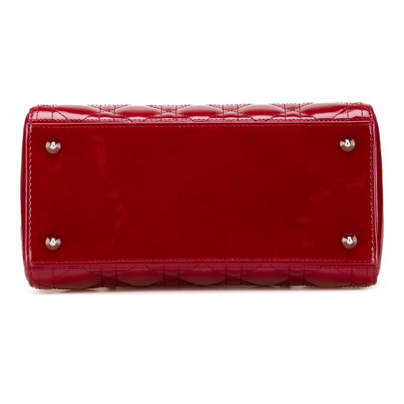 Pre-owned Dior Cannage Lady Dior Medium Handbag/Shoulder Bag, 2-Way, Red Patent Leather, Women's.