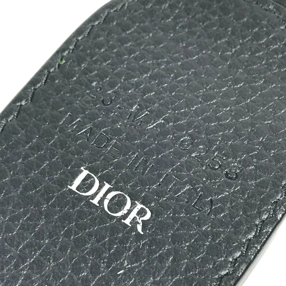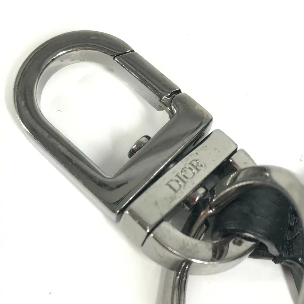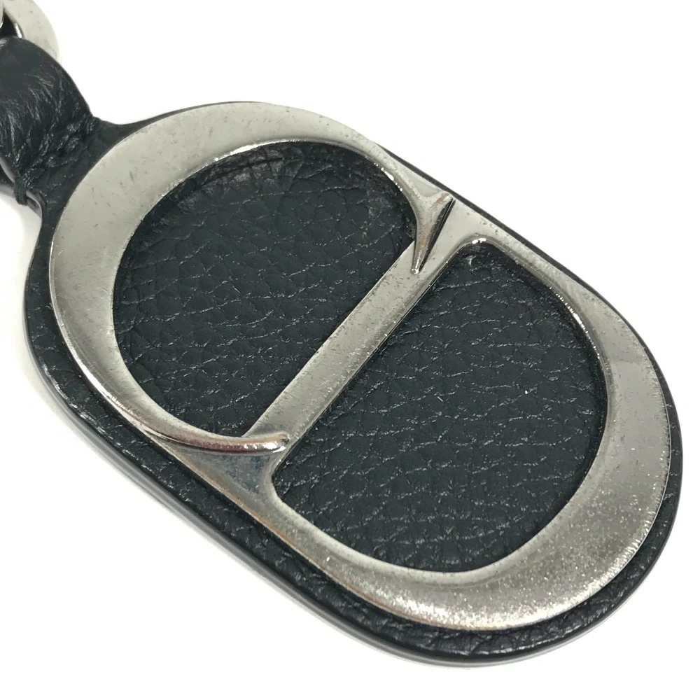 Pre-owned Dior CD logo bag charm key ring, black leather key holder for women.