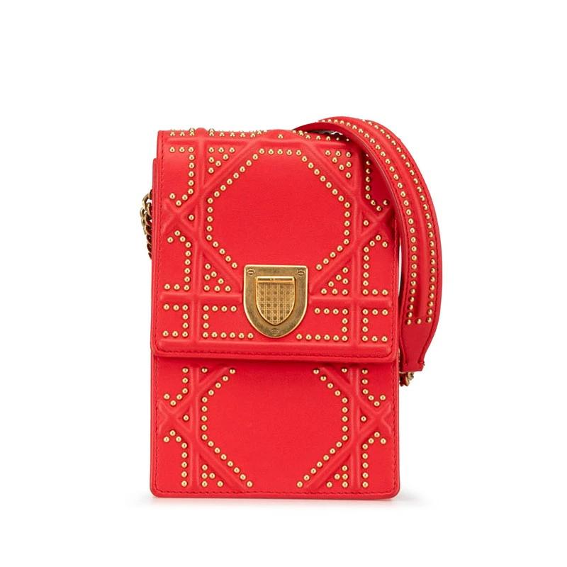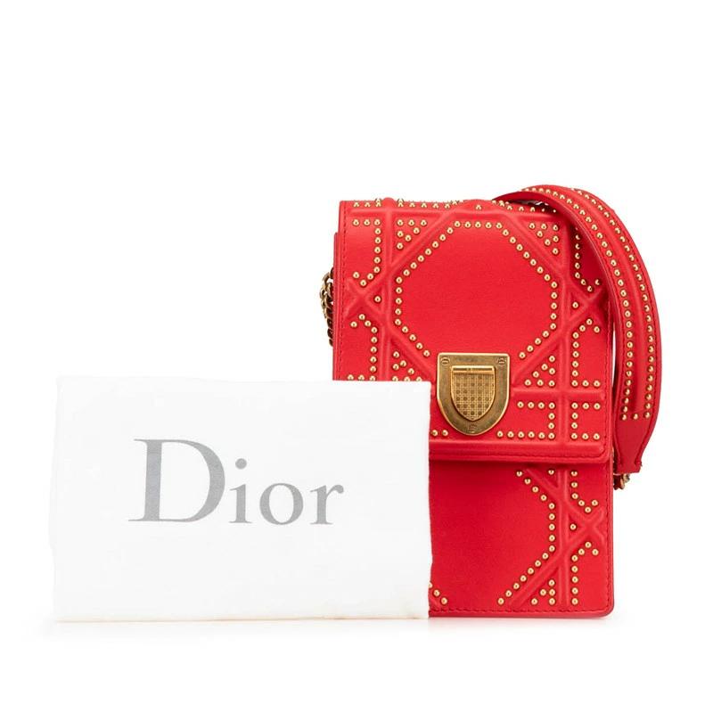 Pre-owned Dior Diorama Studded Crossbody Chain Shoulder Bag in Red and Gold Leather. Women's.