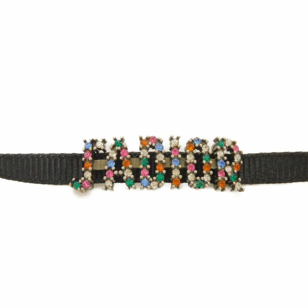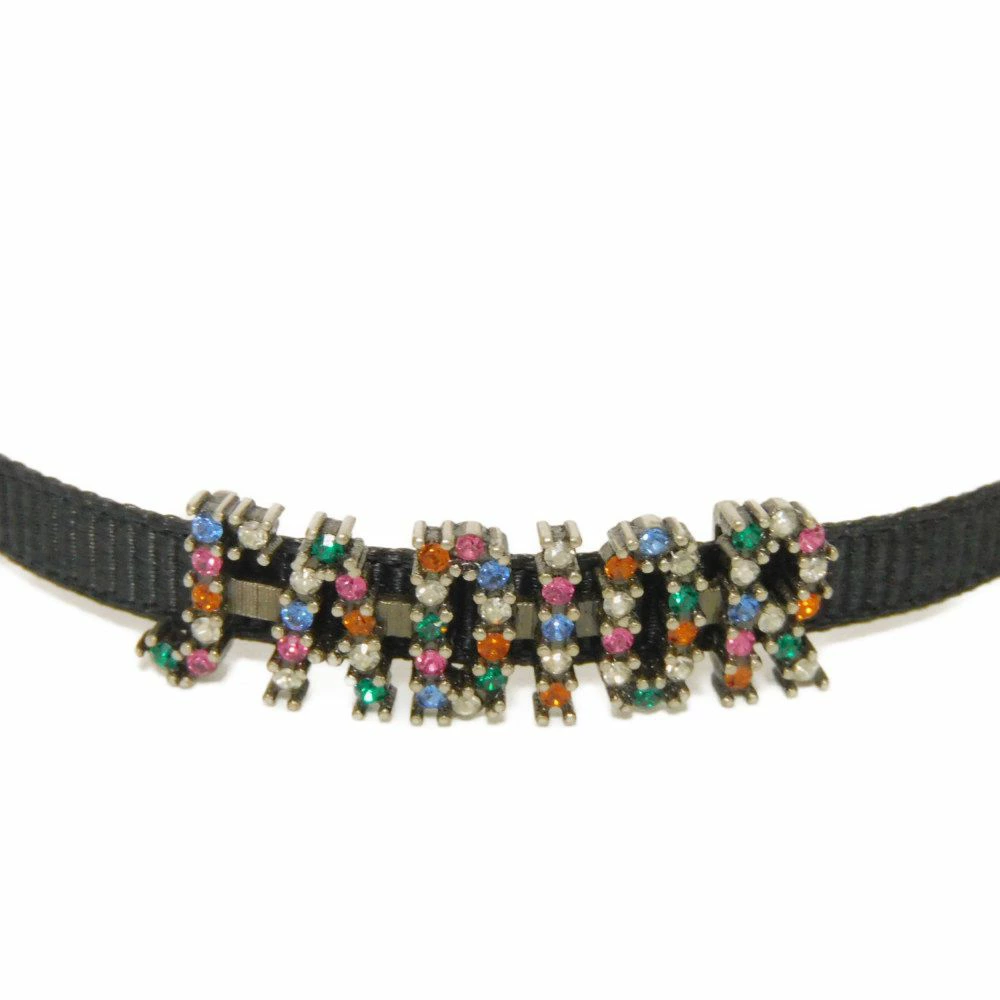 | グログランリボンとジャディオールのロゴにカラフルなカラーのラインストーンが装飾された「J'ADIOR クリスタル チョーカー」ネックレスです。 |