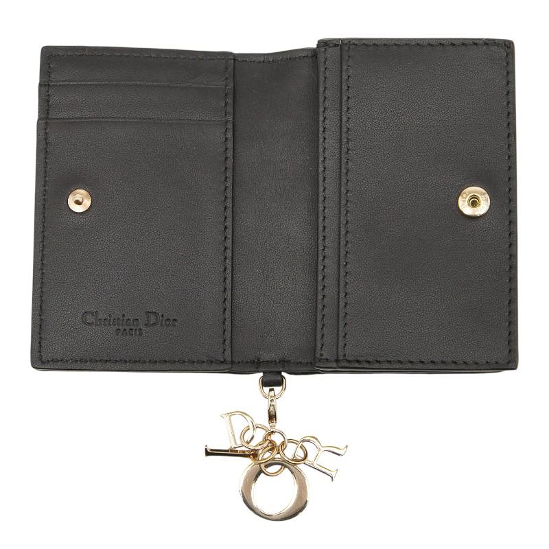 Pre-owned Dior Lady Dior Cannage Card Case in Black Leather.