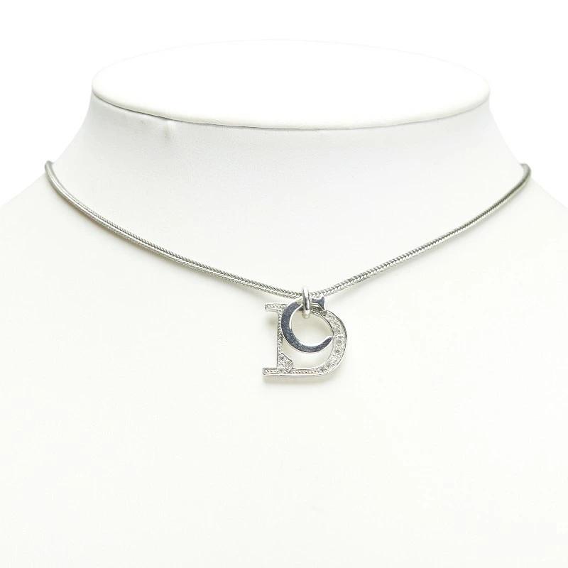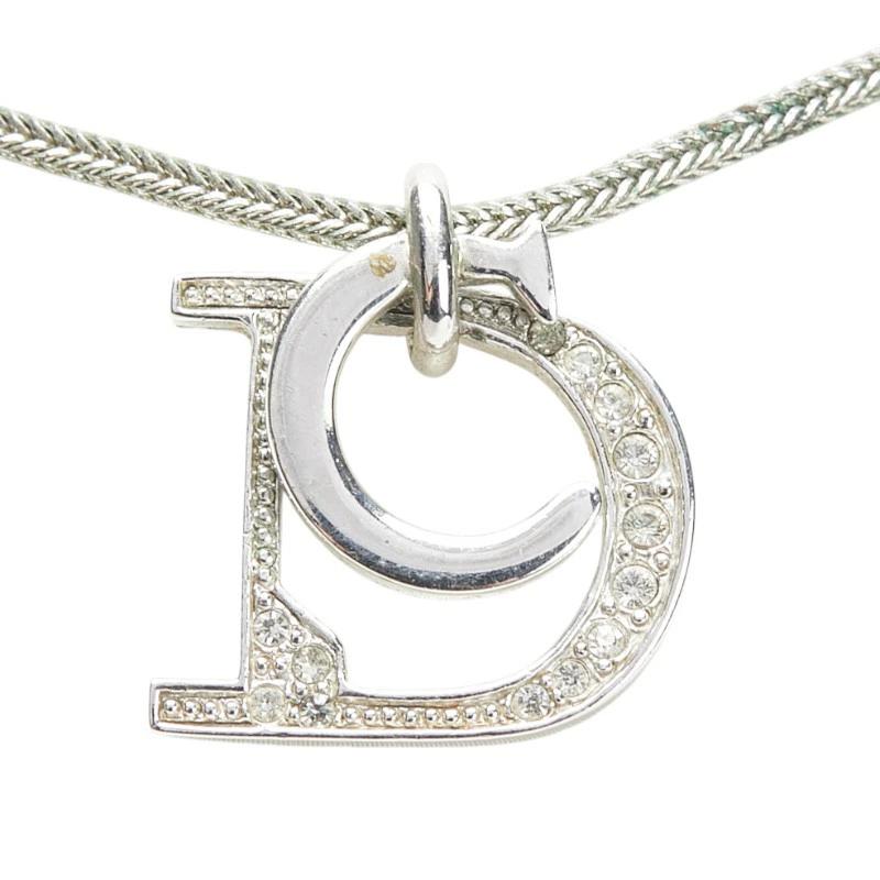 Pre-owned Dior rhinestone necklace in silver metal for women.