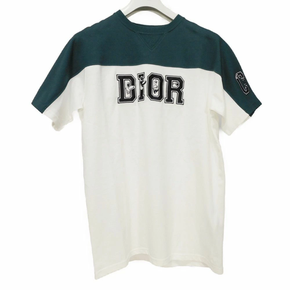 | ディオールのロゴとケニーシャーフのデザインを組み合わせた「ロゴ ワッペン カラーブロック クルーネック」半袖Tシャツです。 |